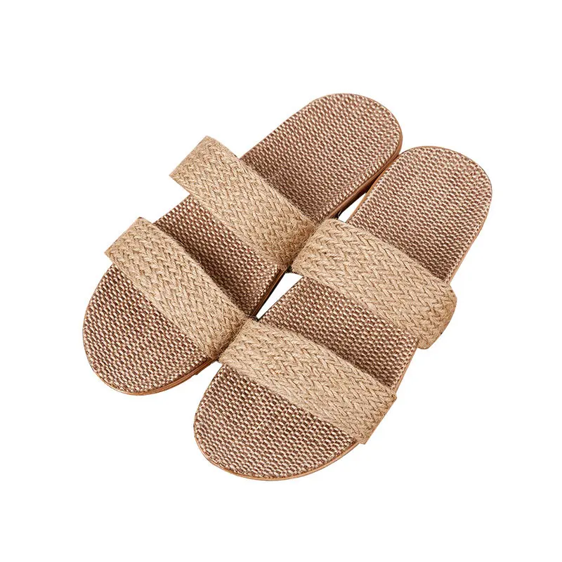 Шлепанцы женские, из льна, дышащие, на плоской подошве, SH061202