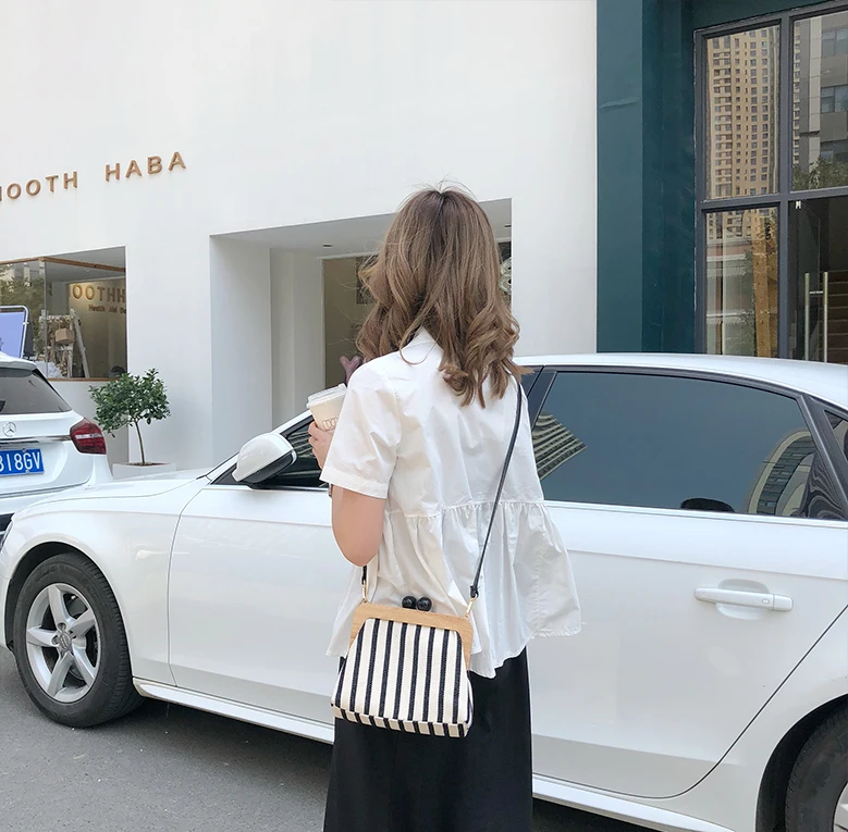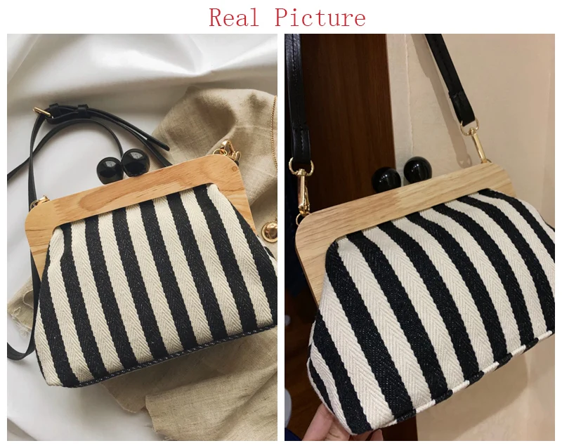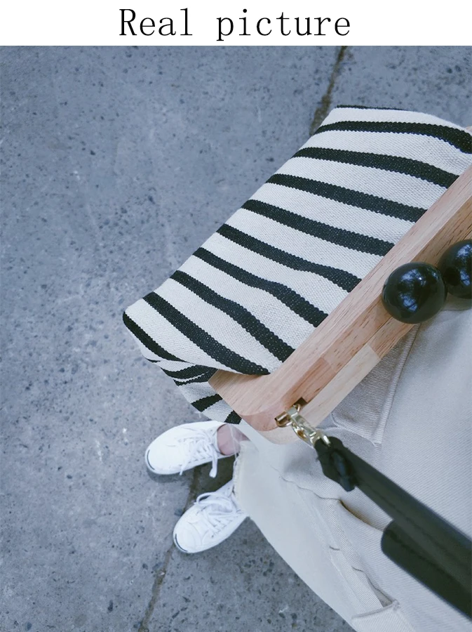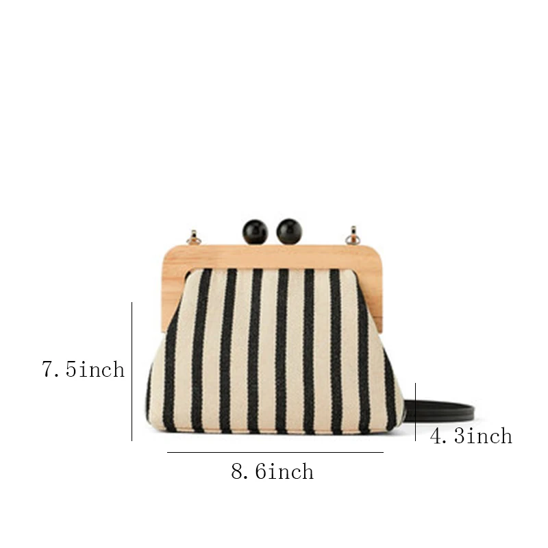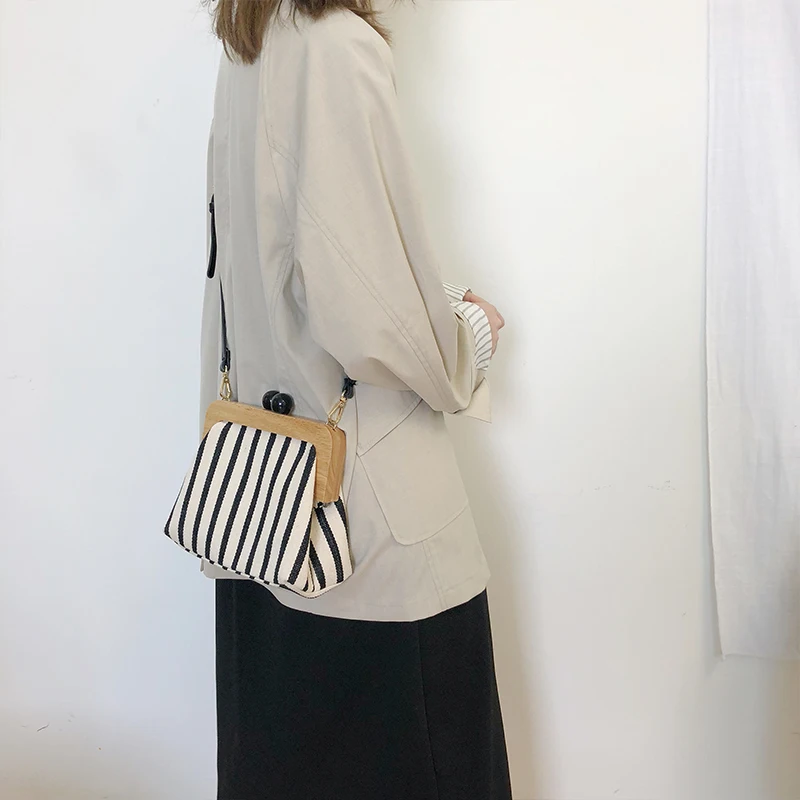 Сумочка женская с деревянным зажимом, полосатый мессенджер в стиле ретро, тканевый клатч через плечо с бусинами, клатч на ремне