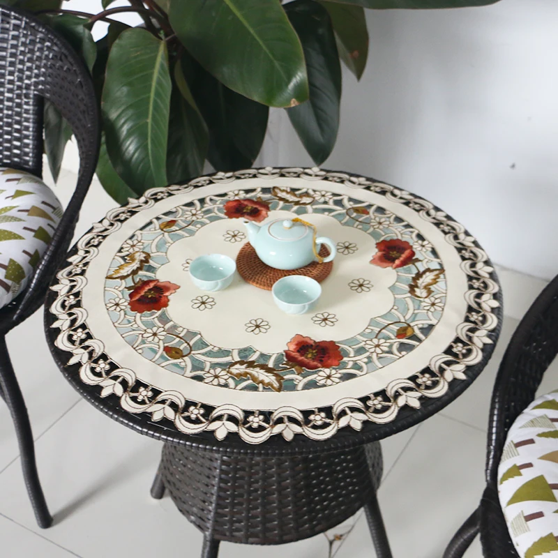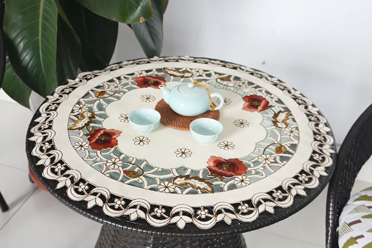 Скатерть круглая с вышивкой в европейском пасторальном стиле, небольшая скатерть для балкона, универсальная накидка для кондиционера и телевизора
