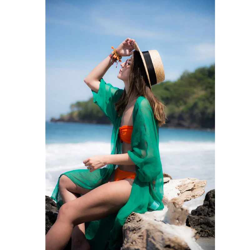 Сексуальные шифоновые накидки на бикини, летнее пляжное платье, жен...