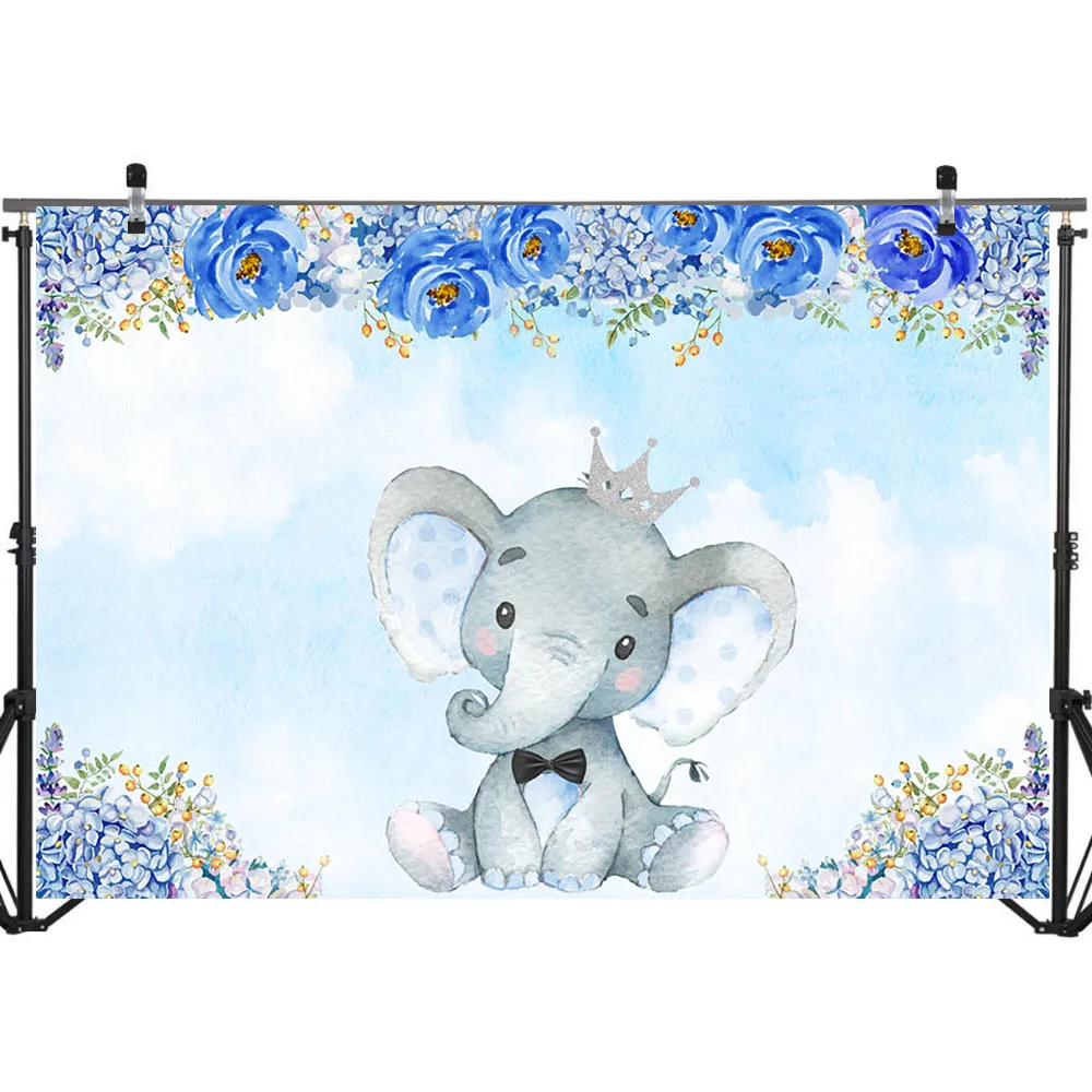 Фон для фотосъемки с изображением слона малыша голубых акварельных цветов баннер на день рождения фон для фотосъемки десертный стол Декор реквизит