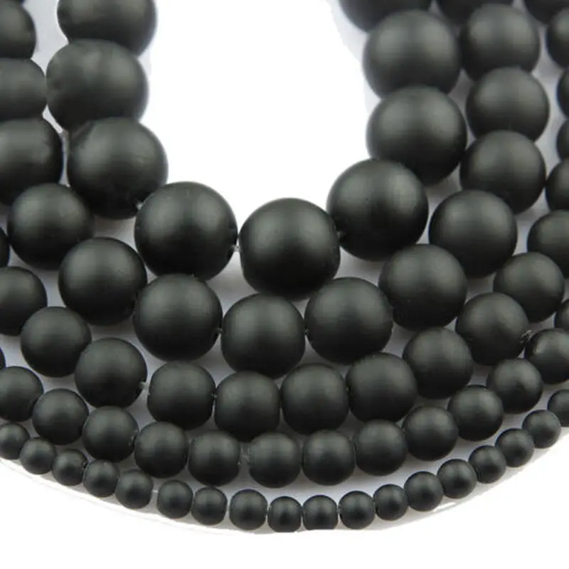 Бусины из матового стекла, черные, 4681012 мм, 15 дюймов, 1 нитьпартия