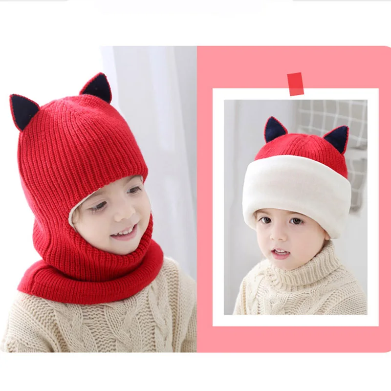Брендовая теплая детская вязаная шапка RUHAO, осенне-зимняя шапочка в виде костюма овцы для мальчиков и девочек, хлопковый шарф с героями мультфильмов, вязаная накидка с ушками, Шерстяная кепка