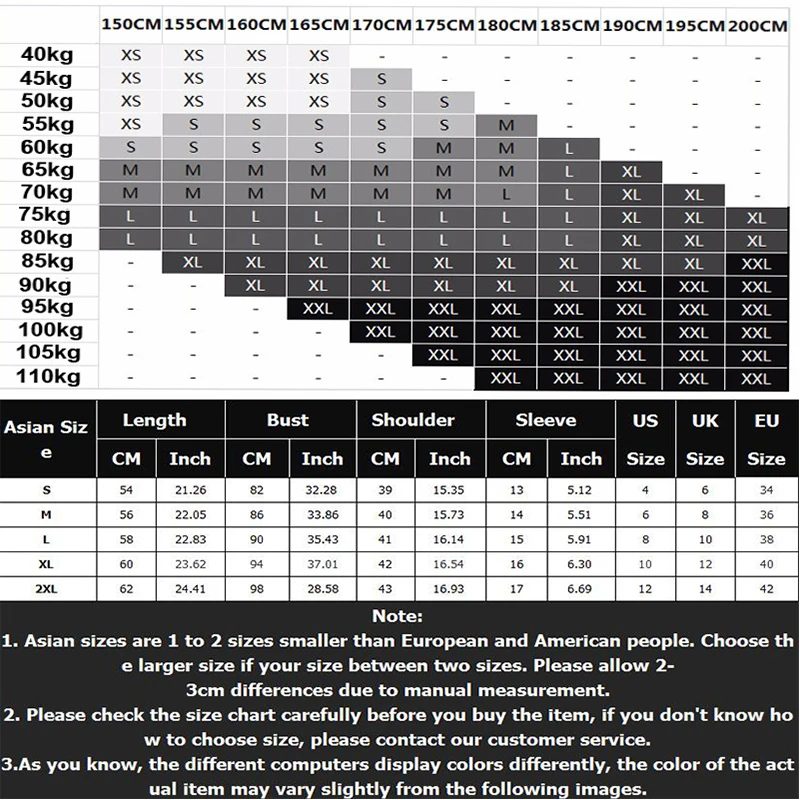 Азиатский РазмерДлинаБюстПлечоРукавСШАВеликобританияЕССмДюймСмДюймСмДюймСмДюймРазмерРазмерРазмерS5421,268232,28 3915,35 135,12 4634М5622,058633,864015,73 145,51 6836L5822,839035,434116,14 155,91 81038XL6023,629437,014216,54 166,30 1012402XL6224,419828,584316,93 176,69 121442Примечание:1. Азиатский Размеры Это 1 Для 2 Размеры Меньше Чем Европейский И Американский Людей. Выберите В Больше Размер Если Ваш Размер Между Два Размеры. Пожалуйста, Позвольте 2-3 см Различия Из-за Для Руководство по эксплуатации Измерение.2. Пожалуйста, Проверьте В Размер Таблица Осторожно До Вы Купить В Товар, Если Вы Не надо Знать Как Для Выберите Размер, Пожалуйста, Контакт Наши Клиент Обслуживание.3. Как Вы Знаете, В Разные Компьютеры Дисплей Цвета По-разному, В Цвет О В Фактический Товар Май Варьируется Слегка От В Далее Изображения.