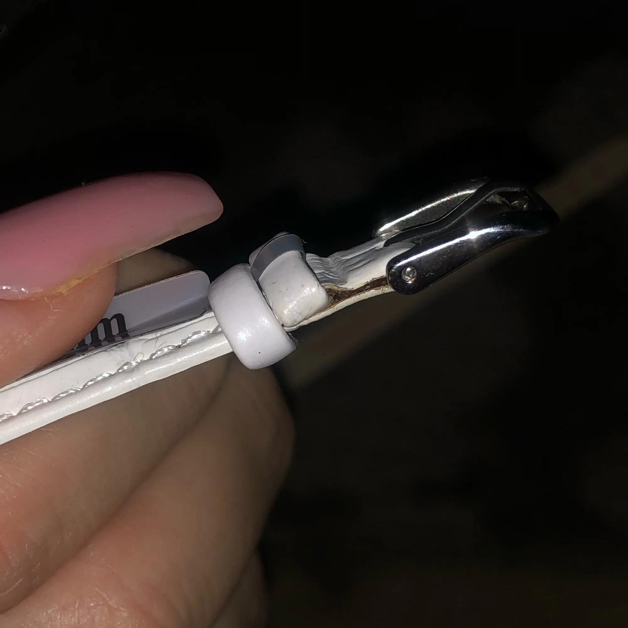 хороший ремешок, цвет белый немного темно-белый. в комплекте прибор для смены ремешка