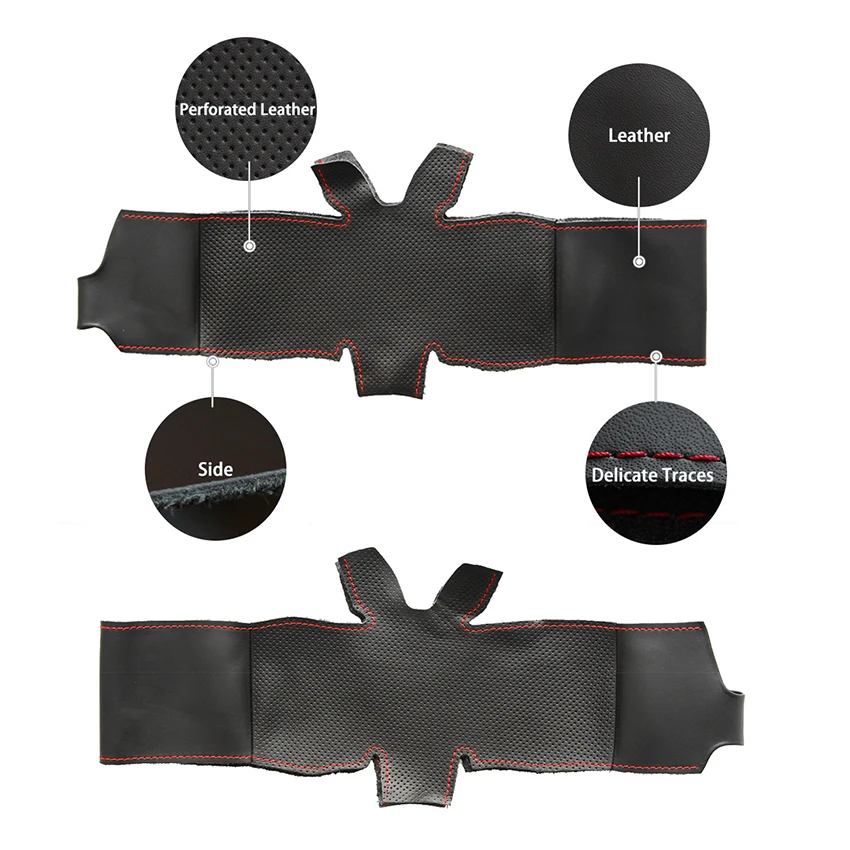Сшитая вручную черная противоскользящая кожа Чехол рулевого колеса ...