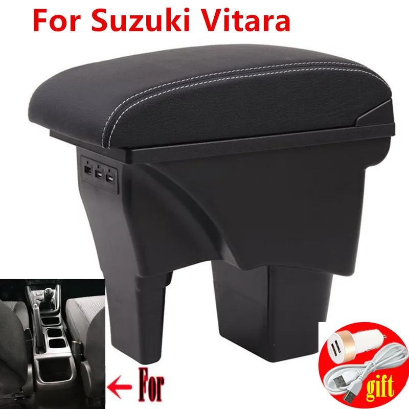 Подлокотник для Suzuki VITARA, без перфорации, центральный контейнер для хранения в салоне автомобиля, подлокотник с usb-зарядкой