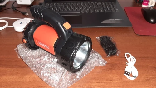 Посылка содержит:Низкий с комплекпосылка версии А:1 светодиодный прожектор1 x Кабель Micro USB для зарядки1 x плечевой ремень