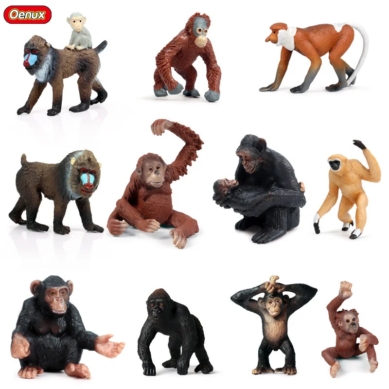 Особенность:Оригинальные дикие животные Oenux, шимпанзе, орангутанг, Горилла, обезьяна, модель, фигурки животных, миниатюрная фигурка, игрушка для детей, подарок