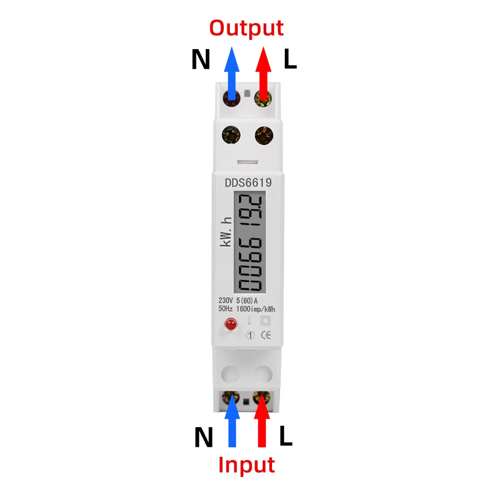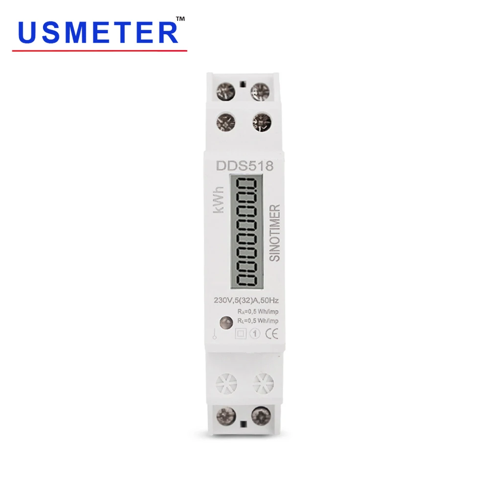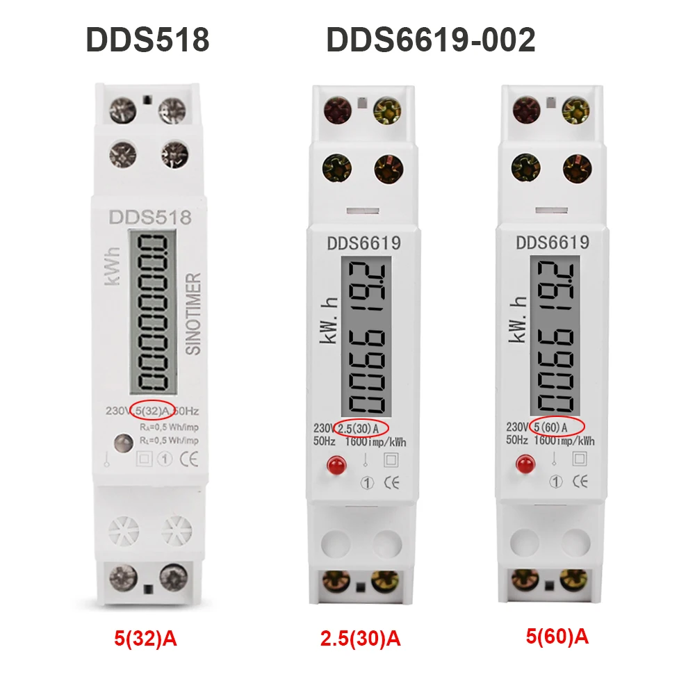 Однофазный ваттметр DDS5186619, измеритель на DIN-рейку в кВтч, измеритель расхода электроэнергии 230 В, 1P, ЖК-дисплей 5(32), A 2,5 (30), A 5(60), A кВтч