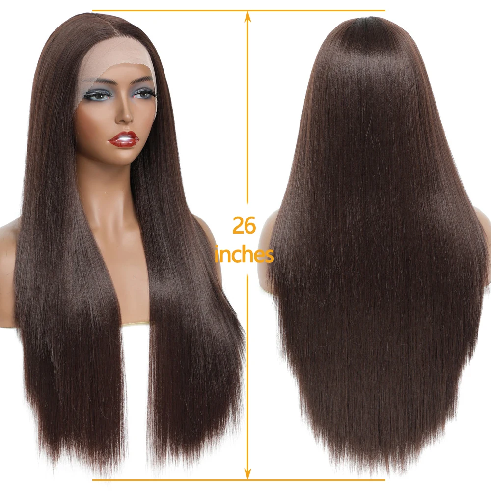 Парик из синтетического кружева спереди для черных женщин, светильник, коричневый цвет, длинный Yaki, прямой парик для волос, средняя часть, Термостойкое волокно, X-TRESS