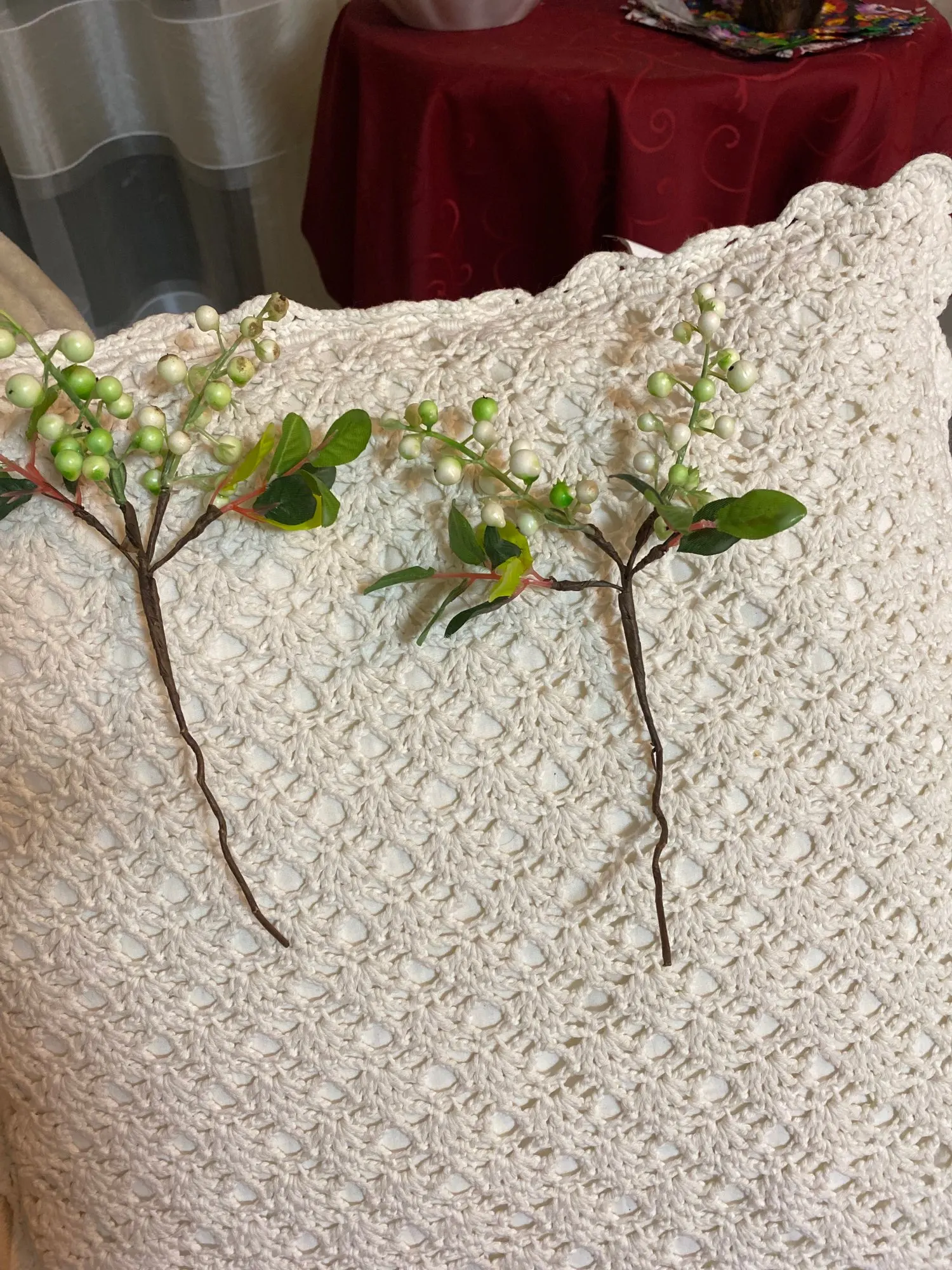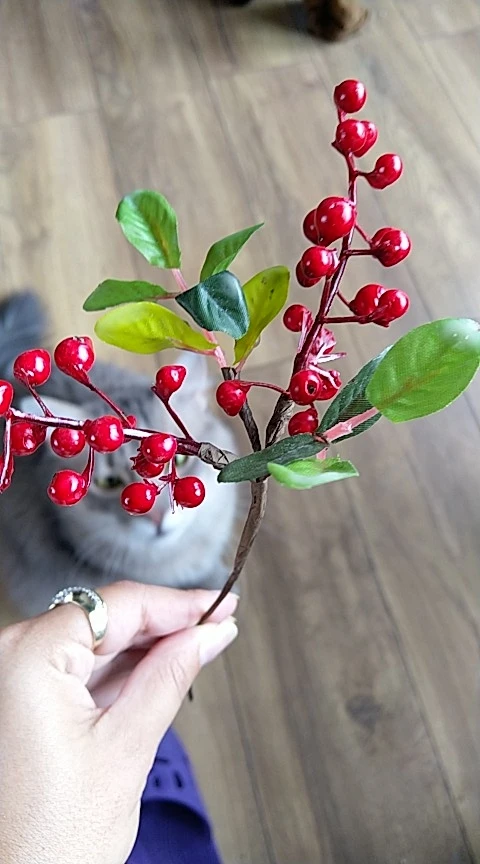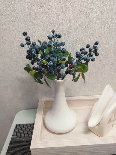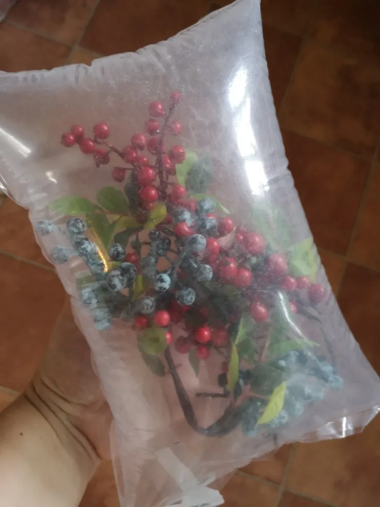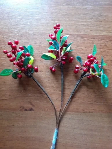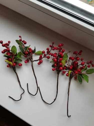 Заказ шёл очень долго, почти 3 месяца. Веточки были хорошо упакованы в пакет, в котором был воздух, но несмотря на это несколько несколько листиков и ягод оторвалось. Веточки выглядят достаточно реалистично. Если присмотреться видны следы клея. Заказала 4 веточки для букетика - маловато, надо заказывать ещё. Цена без скидки завышена. На фото смотрятся лучше чем в живую.