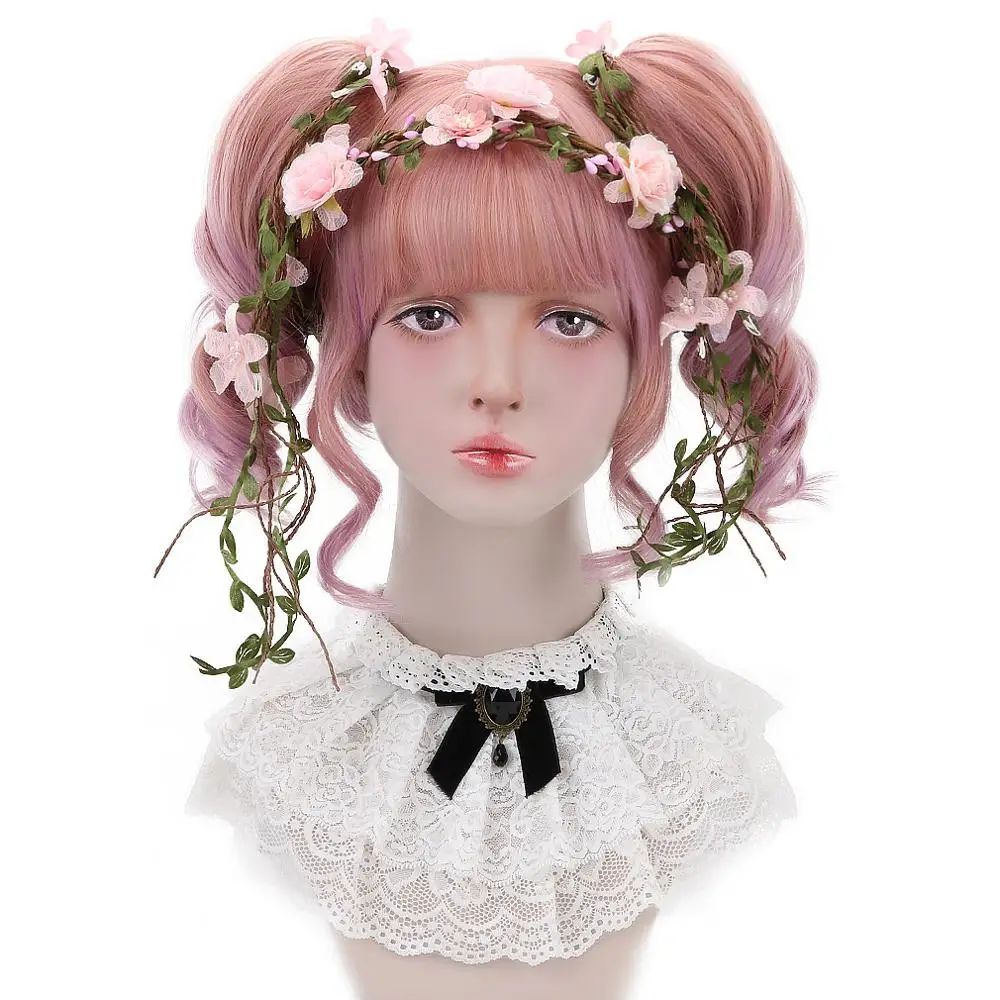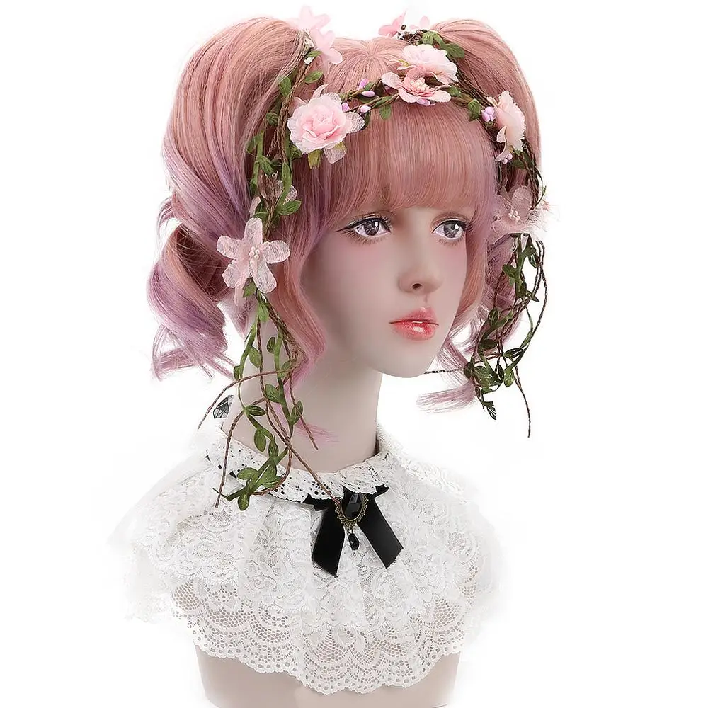Парик Лолиты для женщин, 12 "Розовый Фиолетовый Ombre синтетические волосы косплей 2 когтя конский хвост наращивание волос парик с челкой термостойкий