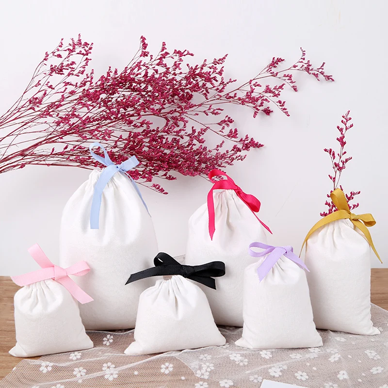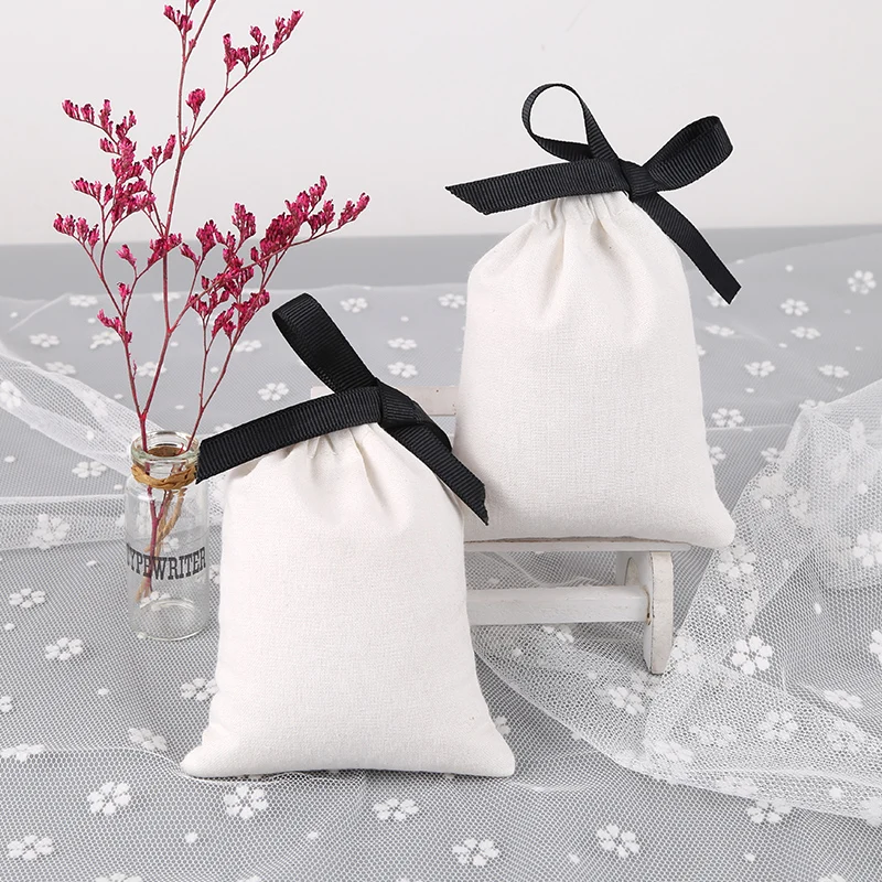 Мешочки Тканевые для упаковки ювелирных изделий, 10x15 см, с черной лентой, 100, хлопковый мешочек для ювелирных изделий