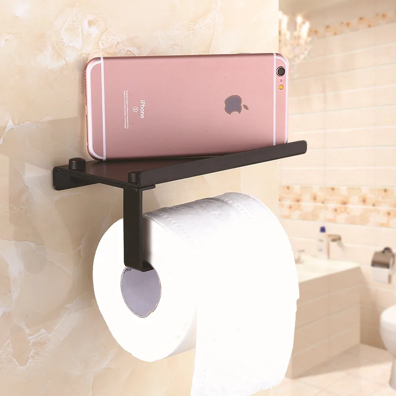 Tuqiu держатель для бумаги в ванную комнату с полкой для телефона, алюминиевый держатель для рулона черной бумаги, Квадратный Белый держатель для туалетной бумаги, держатель для салфеток