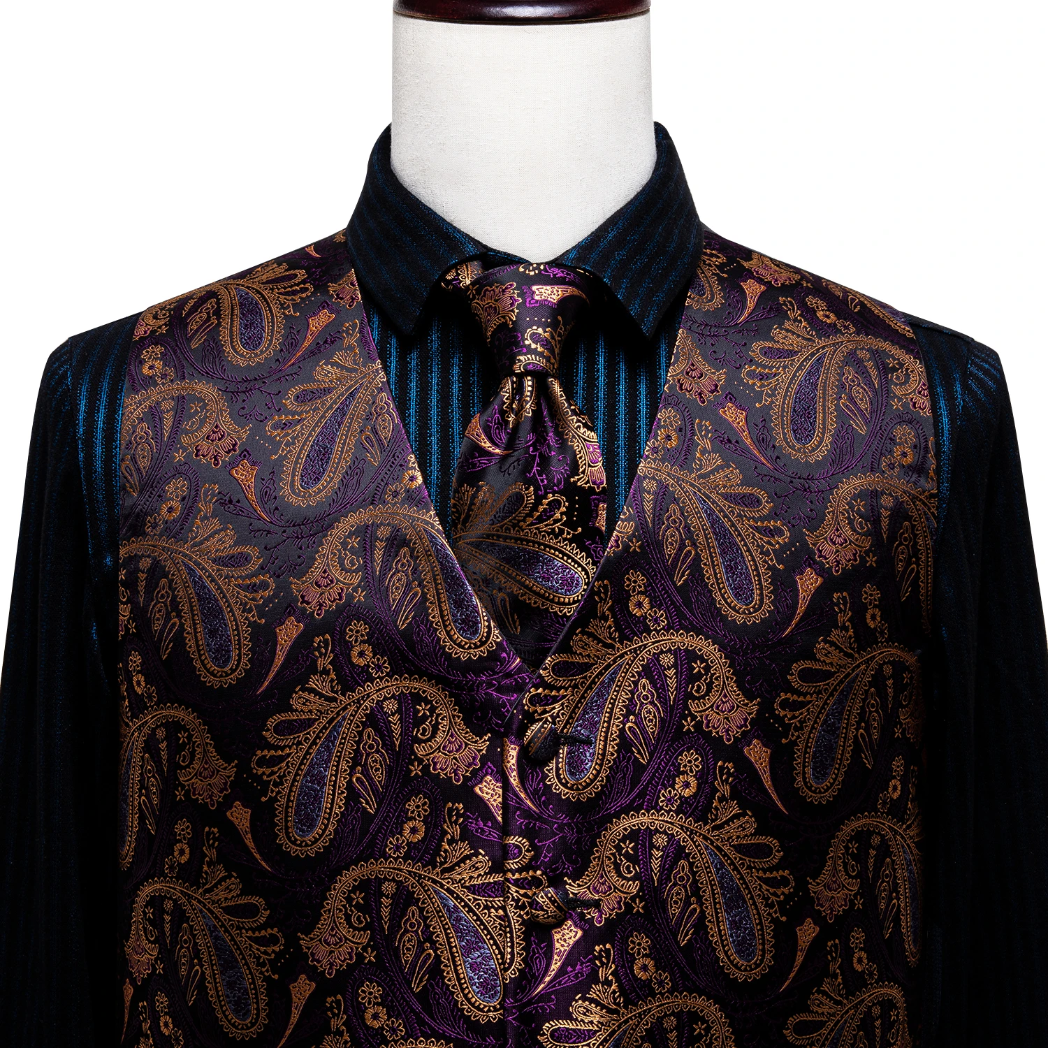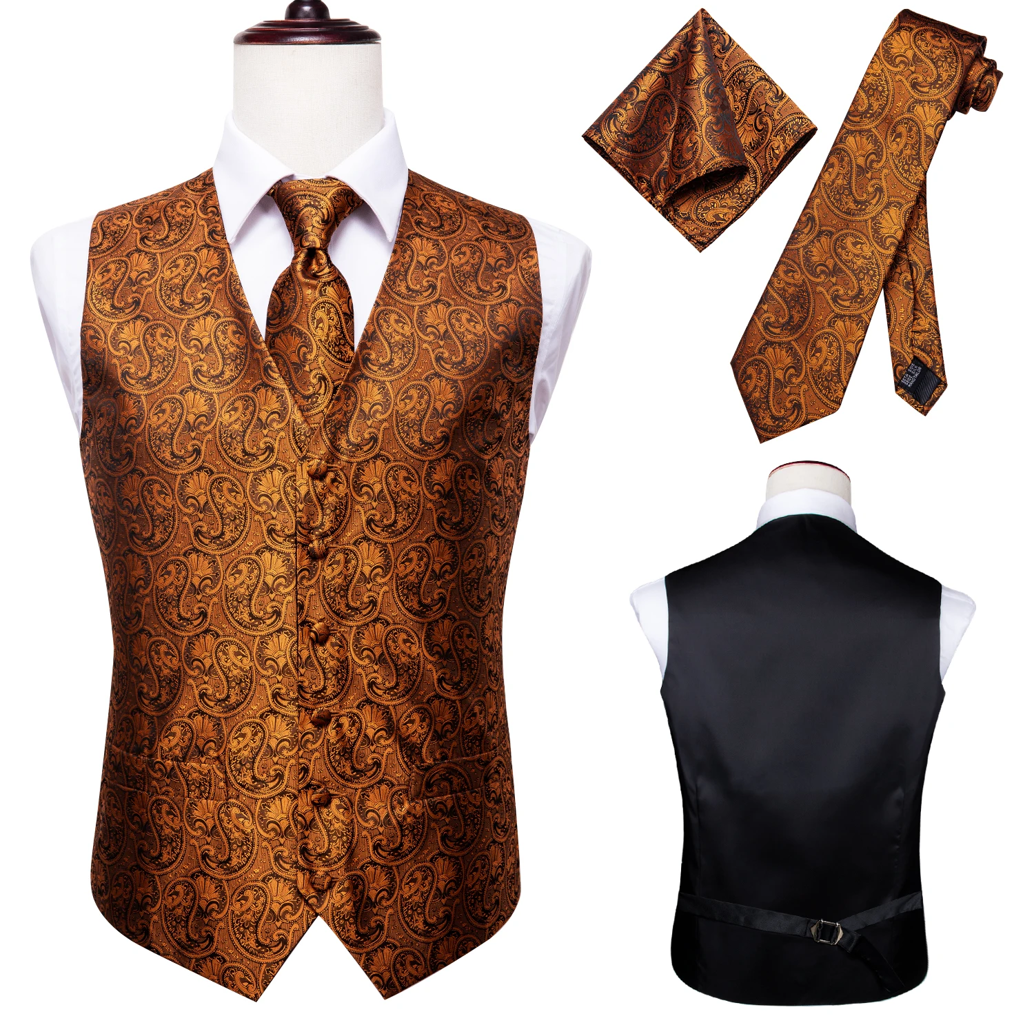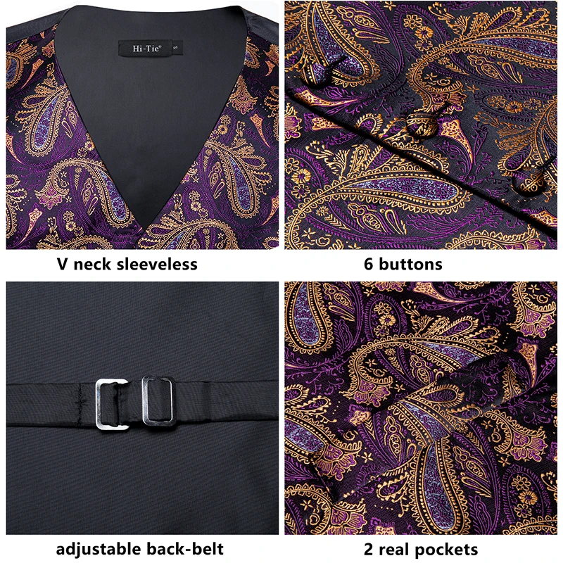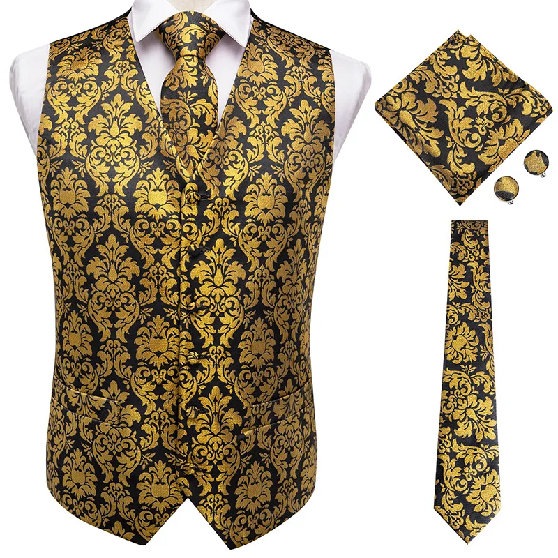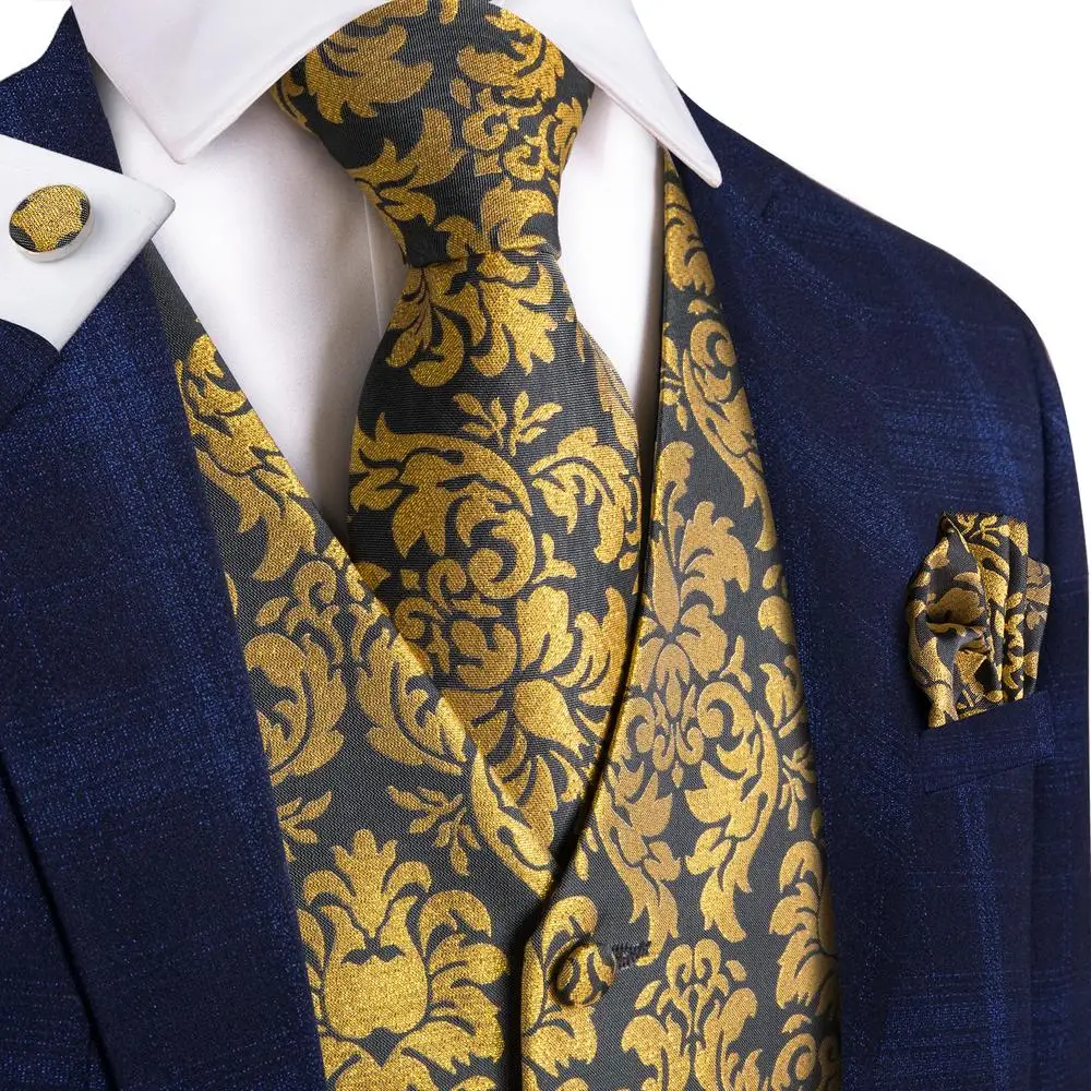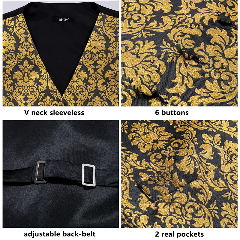 Роскошный черный мужской жилет Hi-Tie с пейсли-принтом, свадебные запонки, 100% шелковый жилет для мужчин, Золотой жилет, желтый классический жилет