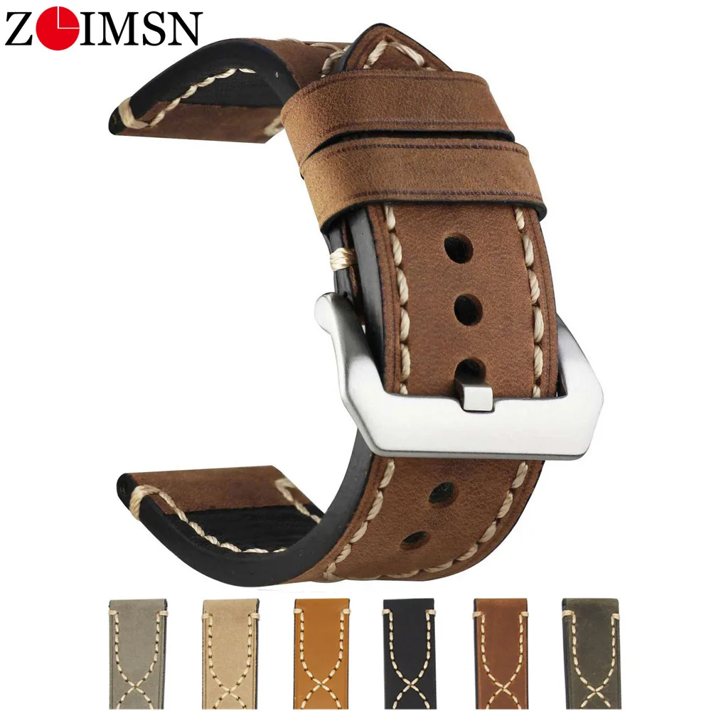 Ремешок ZLIMSN из коровьей кожи для часов, винтажный удлиненный Большой браслет для наручных часов Panerai Fossil, 20 мм, 22 мм, 24 мм, 26 мм