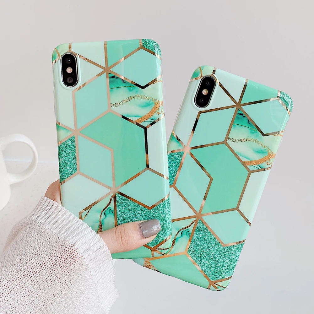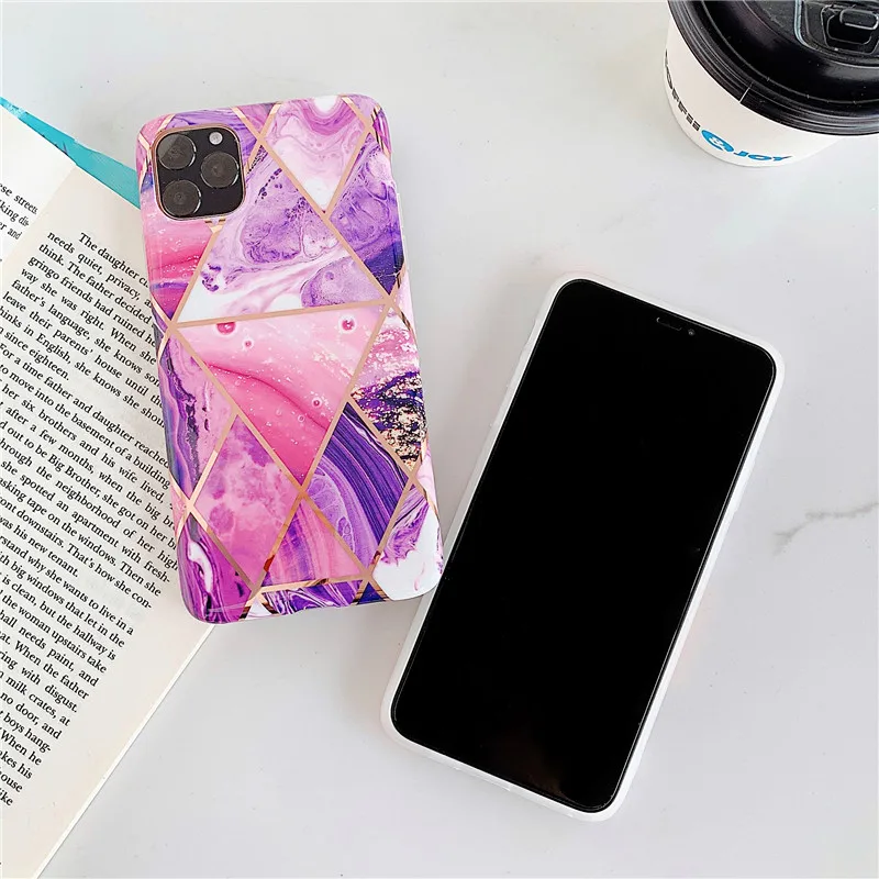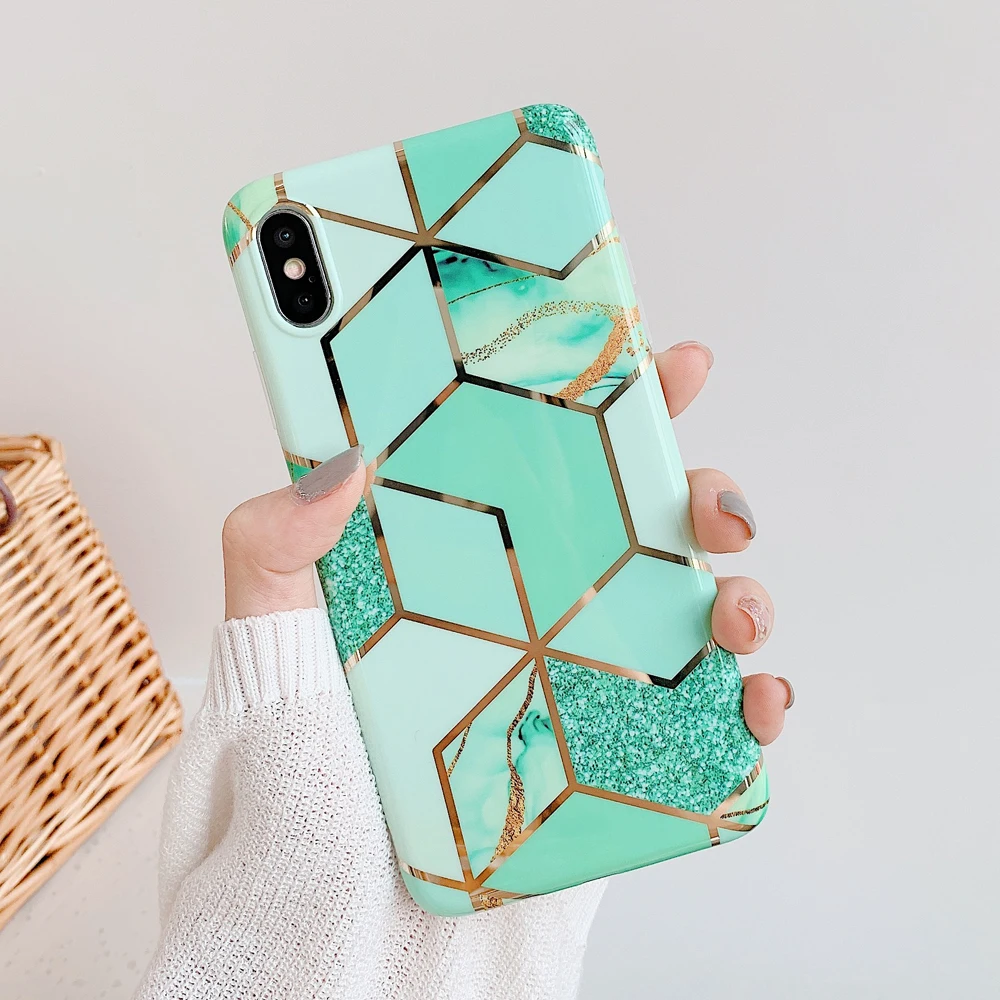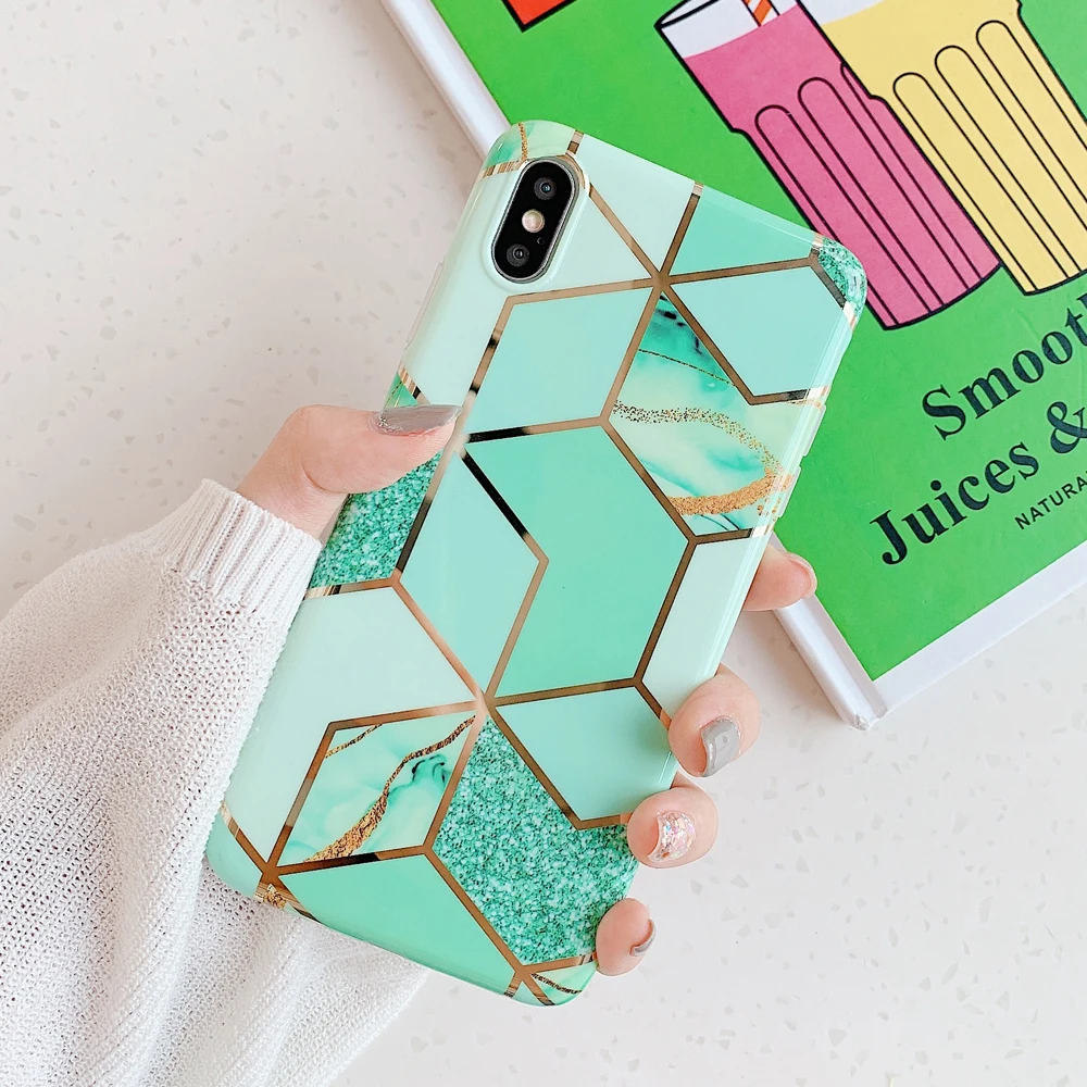 Геометрические мраморные телефонные чехлы LOVECOM для iPhone 13, 12, 11 Pro Max, XR, X, XS Max, 7, 8 Plus, мягкий IMD гальванический задний бампер