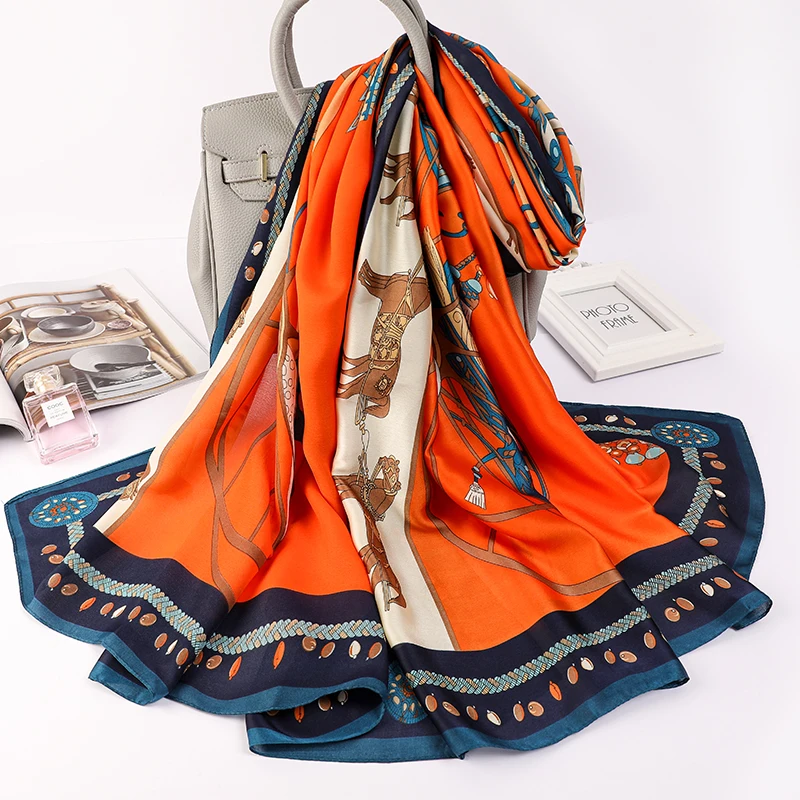 2022 роскошный брендовый летний женский Шарф Модные Качественные мягкие шелковые шарфы женские шали платок Пляжная накидка шелковая бандана
