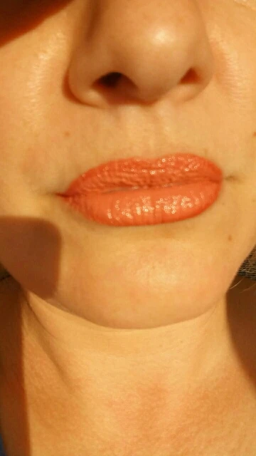 помада очень яркая, сначала немного холодит, вроде ложится ровно, еще не попрбовала в длительной носке. Спасибо продавцу, закажу еще в спокойном тоне.