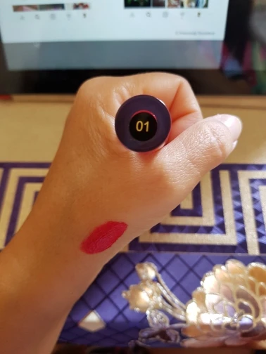 Посылка шла 2 месяца. Цвет прислали не тот. Поэтому звезду сняла. А так помада вроде ничего. Подарю маме - сама такими яркими цветами не пользуюсь. (даже на фото на губах цвет не передаётся. Он ооооочень яркий. А скрин какой заказывала)