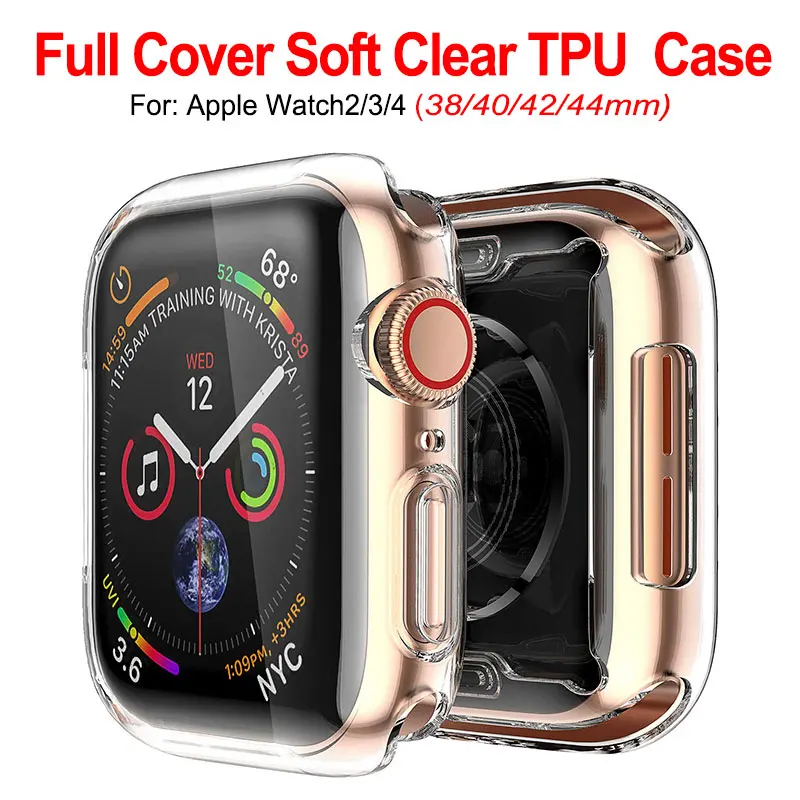 Мягкий защитный чехол для Apple Watch 2 3 4, прозрачный чехол из ТПУ с полной защитой 38 мм, 40 мм, 42 мм, 44 мм, корпус для iWatch