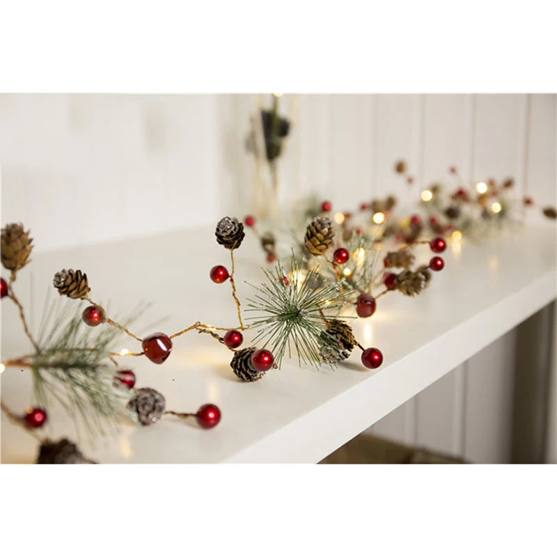 Новогодняя 2 м 20 светодиодов, сосновые конусы, искусственная короб...