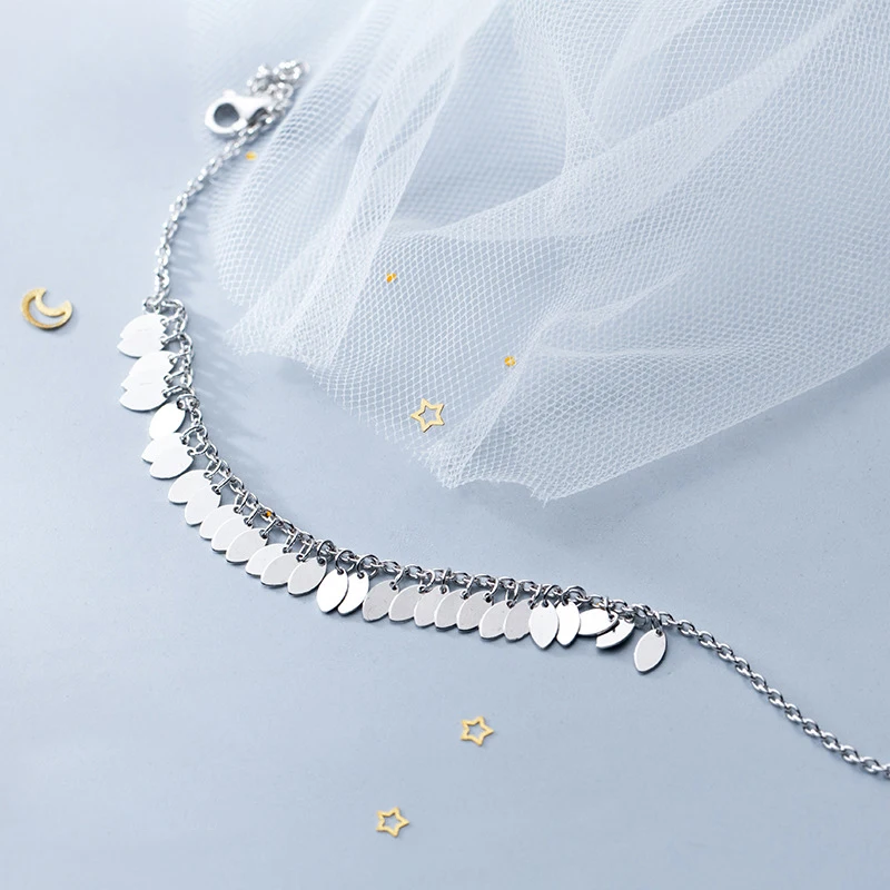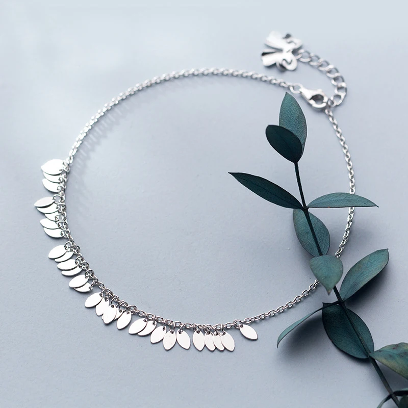 MloveAcc 100% 925 стерлингового серебра браслет ювелирные изделия, овальные листья кисточкой S925 браслет цепь подарок на день рождения для девочек; Женская обувь