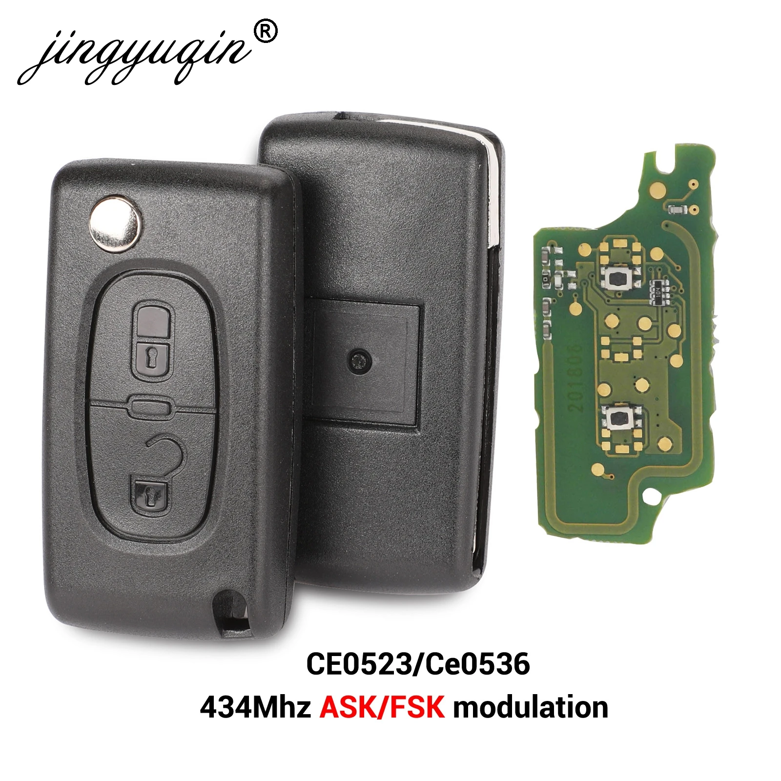 Пульт дистанционного управления jingyuqin 434 МГц ASK FSK, 2 кнопки, брелок для Citroen C2 C3 C4 C5 C6 C8 Xsara Picasso CE0523 Ce0536 VA2HCA Blade