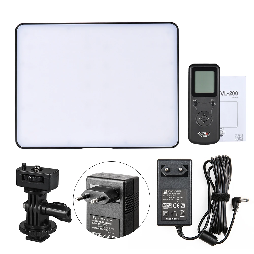 Viltrox VL-200T-двухцветный светодиодный светильник с высококачественными светодиодными бусинами, энергосберегающими, экологически чистыми и долговечными. Цветовая температура и яркость можно легко регулировать в соответствии с вашими требованиями. Беспроводное управление делает вашу работу более удобной. В светодиодный светильник разработан таким образом, чтобы быть светильник вес для съемки на открытом воздухе.Особенности:30 Вт Светодиодный светильник высокой мощности с использованием 192 шт. высококачественных SMD бусин, CRI≥ 95 восстанавливает естественный цвет товара.Двухцветная температура и система яркости с регулируемой яркостью, поддержка плавной регулировки.FK 2,4 GHz Беспроводная система дистанционного управления, 6 групп 19 каналов группового управления. Вы можете управлять одним светильник за один раз или группы светильник одновременно.ЖК-экран HD делает работу более точной и удобной.Двойная система питания-используется литиевая батарея (не входит в комплект) или источник питания постоянного тока (входит в комплект).Компактный и легкий дизайн, толщина всего 22 мм и вес 499 г.Характеристики:-Светодиодный светильникБренд: ViltroxМодель: VL-200TВыходная мощность: 30 ВтЦветовая температура: 20%-100%Макс. Яркость: 2500LM (цветовая температура. 4400K, 100% полный)Макс. Освещенность: 1450Lux/0,5 m (цветовая температура. 4400K, 100% полный)SMD СВЕТОДИОДНЫЙ Бисер: 96 шт. (3300K), 96 шт. (5600K)Индекс цветопередачи: ≥ 95(RA)Группа: 6 (A, B, C, D, E, F)Канал: 1 ~ 19Вилка: США/ЕС (опционально)Вход: 100-240V 50/60Hz 1.2AИнтерфейс адаптера постоянного тока: DC 18 В/3.5A, φ5.5-2,0 ммСовместимый аккумулятор: серия NP-F960/F970(Не входит в комплект)Срок службы батареи: прибл. 1 час (на основе 100% полной, NP-F960, 2400 мАч)Размер изделия: 26*20*2,2 см/10,2*7,9*0,8"Вес изделия: 499 г/17,6 унций-Пульт дистанционного управленияЧастота: FSK 2,4 ГГц Беспроводной дистанционного СистемыРасстояние управления: 20 метровБеспроводная Удаленная Группа: одна группа (A,B,C,D,E,F), Полная группа (ABCDEF)Канал: 19Переход в режим ожидания время: 2,5 мин без работыРабочая температура: -10 ~ 50 °Батарея: 2 шт. AAA батареи(Не входит в комплект)Размер изделия: 14*5,5*1,5 см/5,5*2,2*0,6"Товар Вес: 63 г/2,2 ozРазмер посылка: 37,7*23,7*5,6 см/14,8*9,3*2,2"Вес посылка: 990 г/2,2 фунтаПосылка:1 * Видео светильник1 * пульт дистанционного управления1 * Адаптер для горячего башмака1 * кабель питания1 * Руководство пользователя (английский/китайский)Примечание:Аккумулятор в комплект не входит.