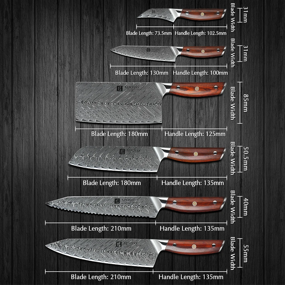 Набор ножей XINZUO vg10 из дамасской стали, Комплект кухонных ножей...