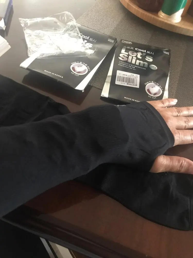 Очень красивые длинные черные охлаждающие перчатки без пальцев. Материал приятный на ощупь, очень эластичный. Длинные перчатки, которые достигают локтя. На самом деле, эффект охлаждения... Очень быстрая доставка в Польшу-25 дней. Спасибо за покупку. Я рекомендую.