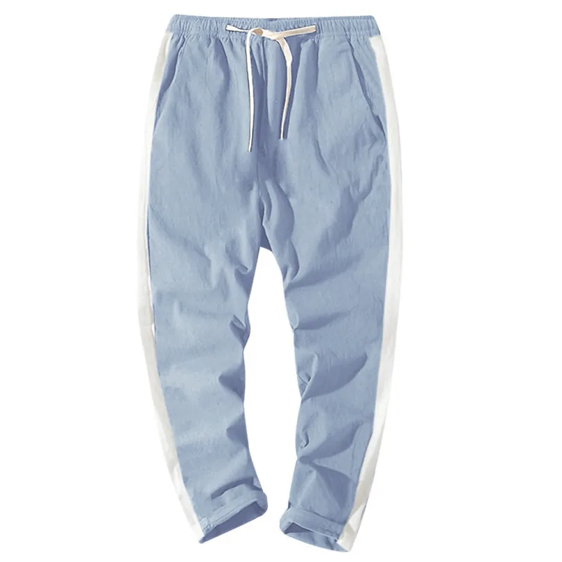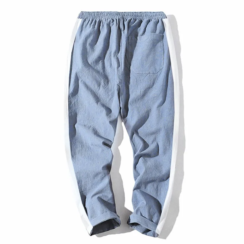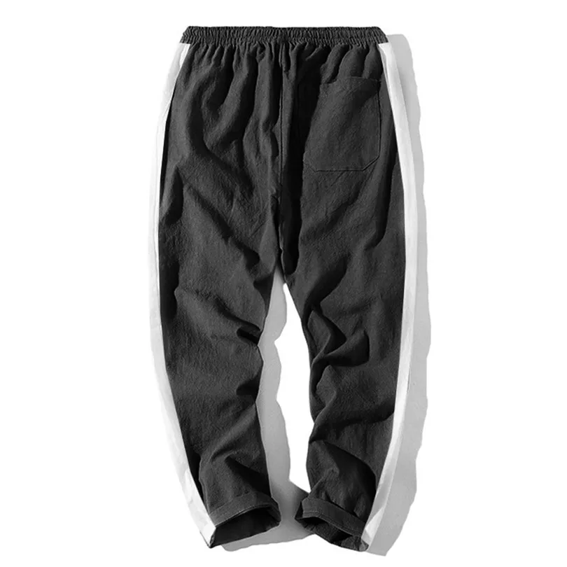 Мужские хлопковые брюки в полоску, модные прямые спортивные штаны с карманами на лето 2019, повседневные спортивные штаны # Jun10, оптовая продажа