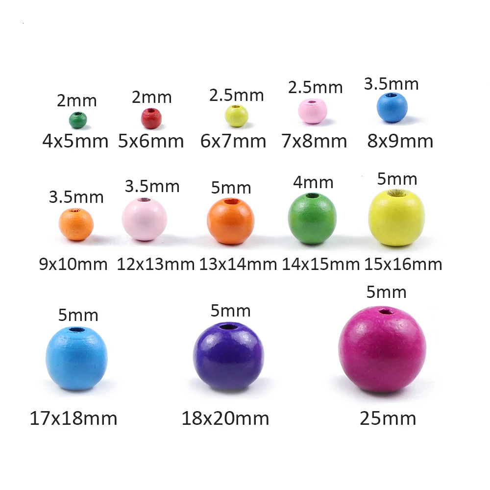 Круглые деревянные бусины с отверстием насыщенного цвета, 5-25 мм, экологически чистые шарики россыпью для украшений сделай сам, ручной работы, детских игрушек, аксессуары для изготовления ювелирных изделий