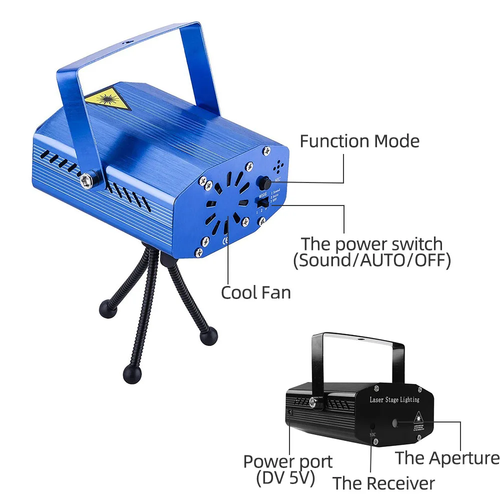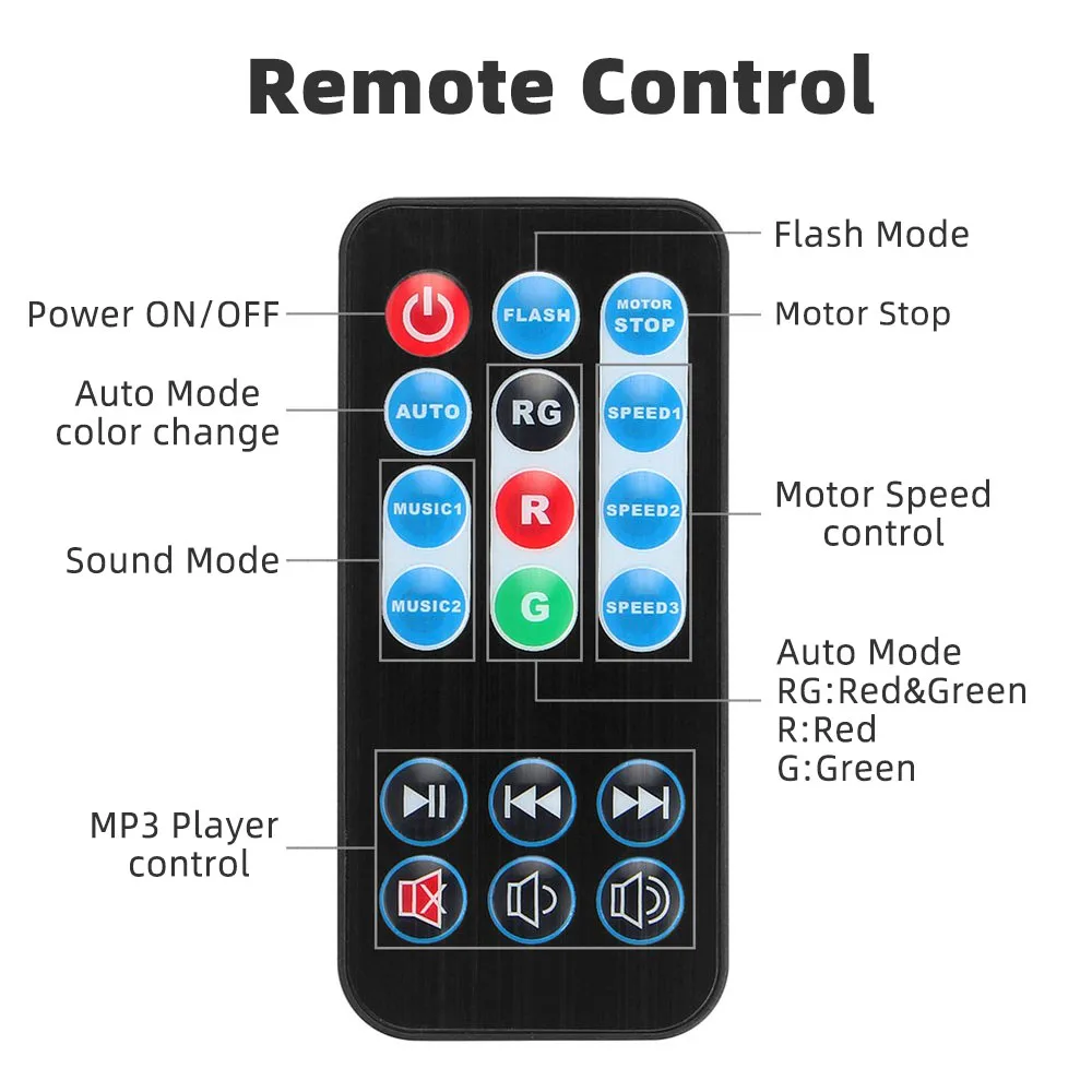 3. Автоматическая, вспышка и активация звука, красные и зеленые «Звезды» мерцают, бегают, скрываются и воспроизводятся автоматически или в соответствии с громкостью музыки. Вы также можете контролировать скорость освещения партии по «speed +» или «speed-» на пульте дистанционного управления.