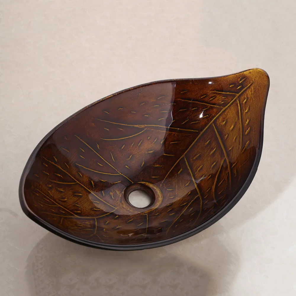 Смеситель Водопад KEMAIDI, набор для раковины из закаленного стекла в стиле ретро, со стеклянной чашей, для раковины с сливом, с рисунком листьев