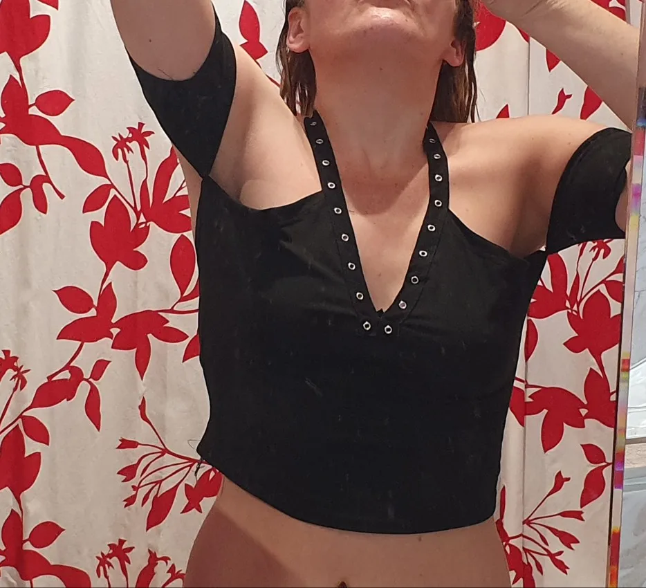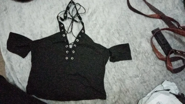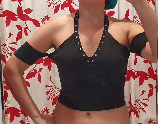 Красивый короткий топ с рукавами «браслеты». Также приятно носить с или без шнуровки Топ возвращается, когда вы поднимаете руки! Приятный материал для ношения. Мои размеры: 1,65 м, 67 кг, обхват груди 95 см, обхват бедер 100 см. Доставка менее чем за месяц. Минимальная упаковка, которая позволяет избежать ослепления моего мусора, могу ли я подтвердить! Обратите внимание на 8/10.