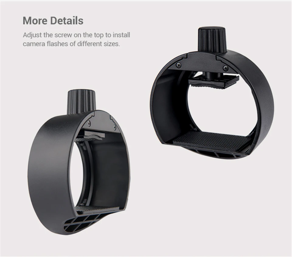 ------------S-R1------------Описание:S-R1 адаптера с круглой головкой может сделать вспышку Godox камеры, например: V860II, V850II, TT685 и TT600 серии Установить AK-R1 аксессуары с круглой головкой для достижения эффектов светильник. Он также может быть прикреплен к вспышкам камеры других брендов, например для Canon. Для Nikon, для Sony и т. д. Особенности:1. Подходит для аксессуаров с круглой головкой Ak-Ri.2. Отрегулируйте винт сверху, чтобы установить вспышки камеры разных размеров.3. С резиновыми ковриками сетки, чтобы плотно зафиксировать вспышки камеры и защитить их поверхность