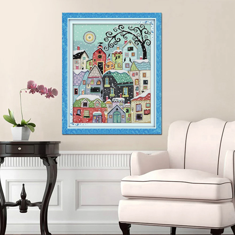 NKF Снежная улица декорации штампованные вышивки крестом узоры DIY комплекты для рукоделия вышивки наборы крестиков для домашнего декора
