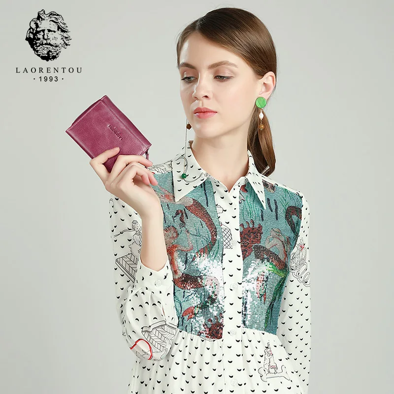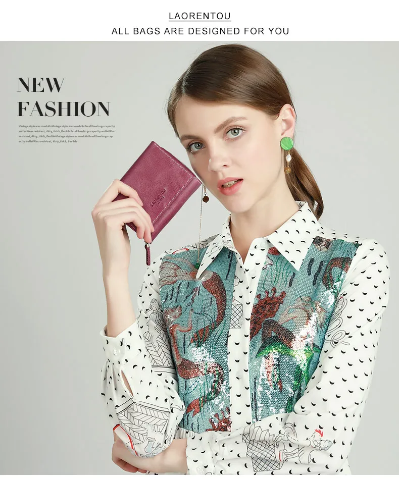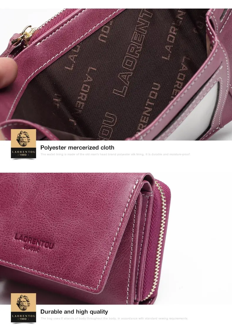 Кожаные кошельки LAORENTOU, Женский кошелек для карт, Женский Повседневный короткий кошелек, большая емкость, кошелек, подарок на день матери