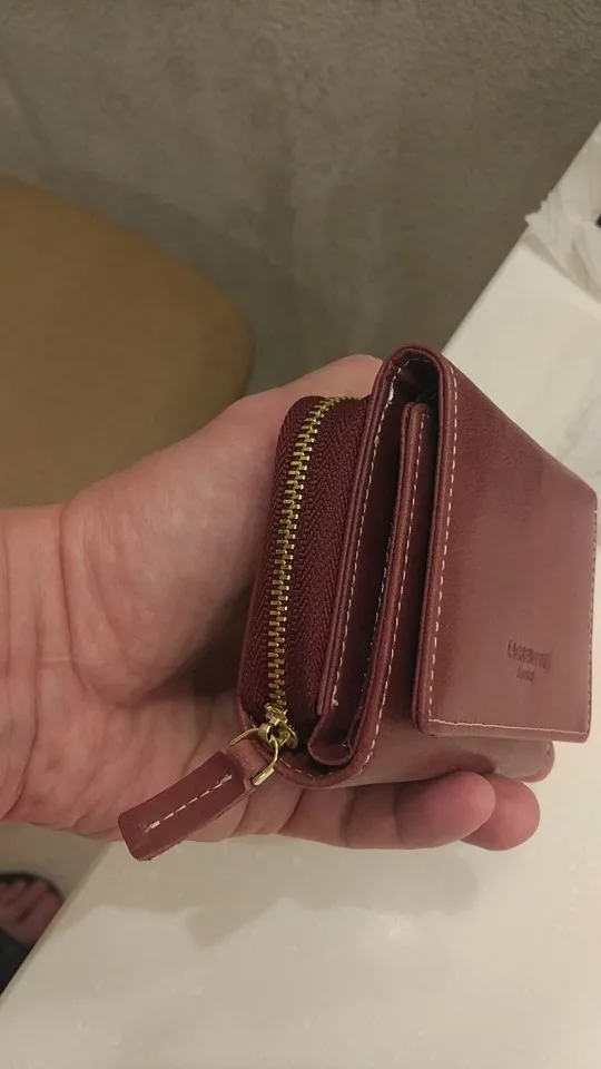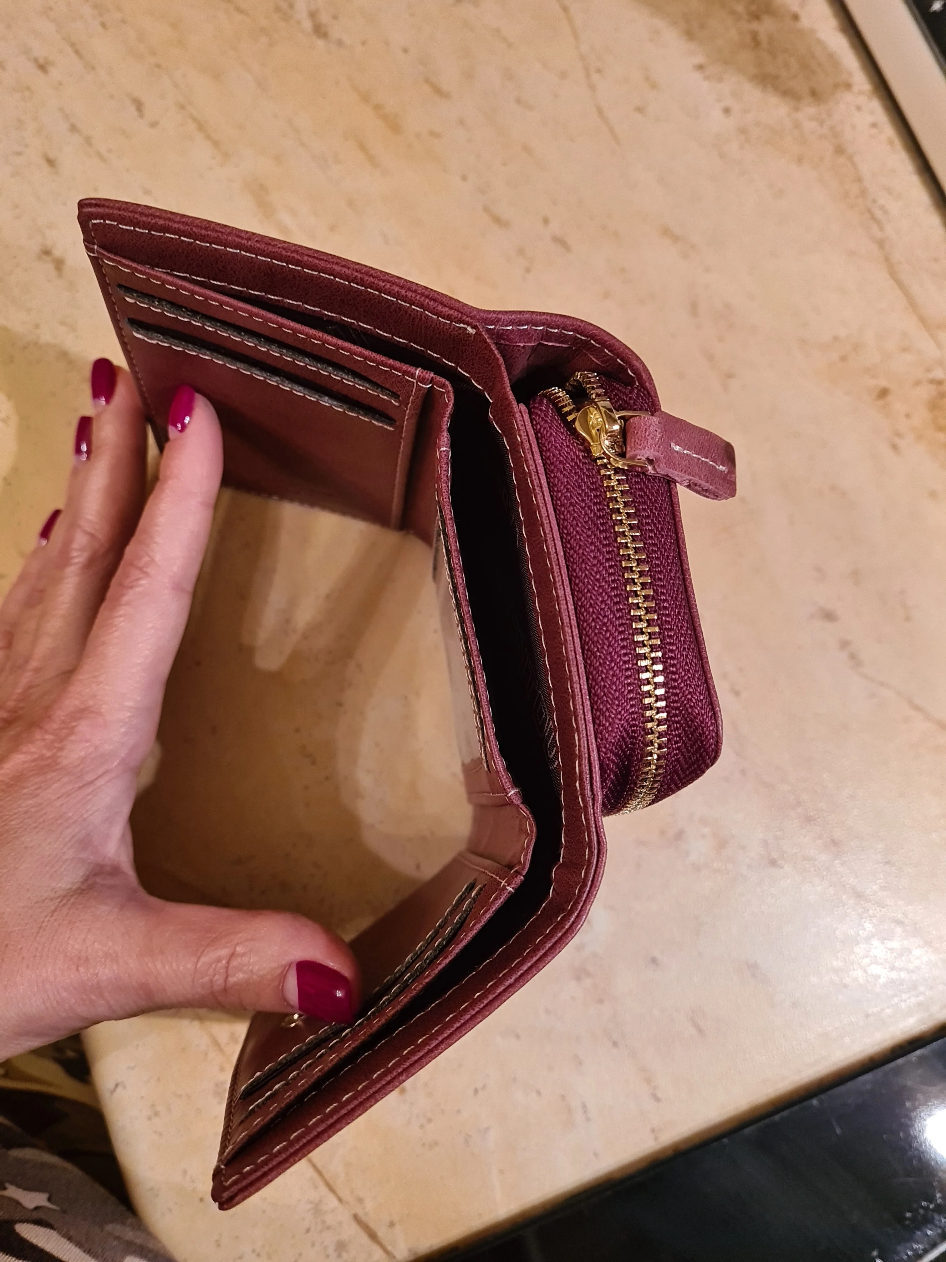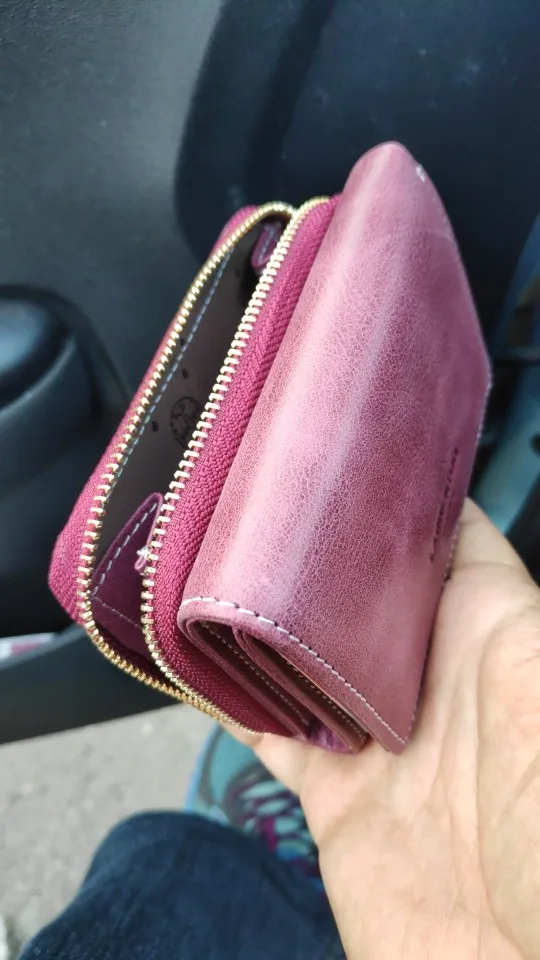 разочарована покупкой. Есть царапины на коже, сам кошелёк был в пятнах от грязных пальцев. Пришлось отмывать. Отделение для мелочи при пошиве немного скошено так, что периодически цепляет молнию замка.