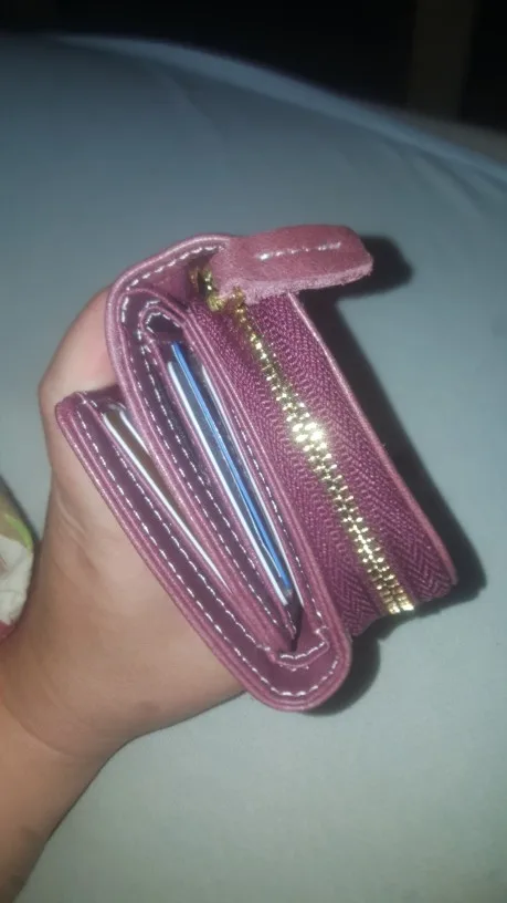 Красивый и милый кошелек. Мне нравится цвет. Меньше, чем я ожидала, но все же будет хорошо служить мне.