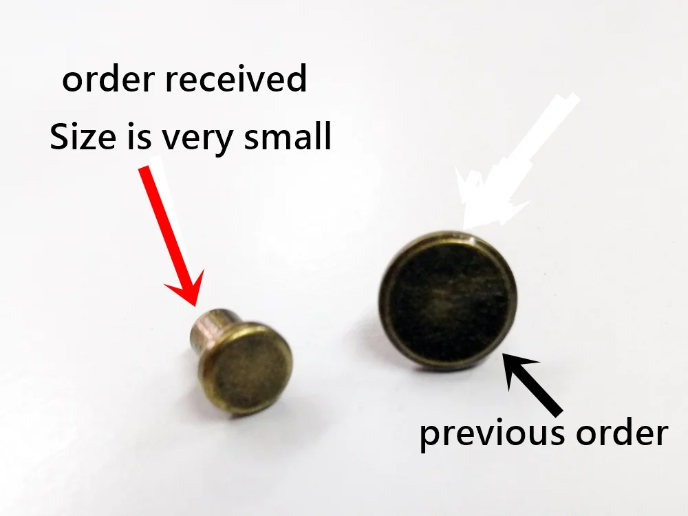 Pedí remaches de 10mm y en su lugar mandaron unos botones diminutos sin la función del remache, no me sirvieron. Además tardaron semanas en enviar el producto, lo hicieron hasta que intenté cancelarlo. Pedí reembolso parcial y me lo otorgaron, no recomiendo a este vendedor.