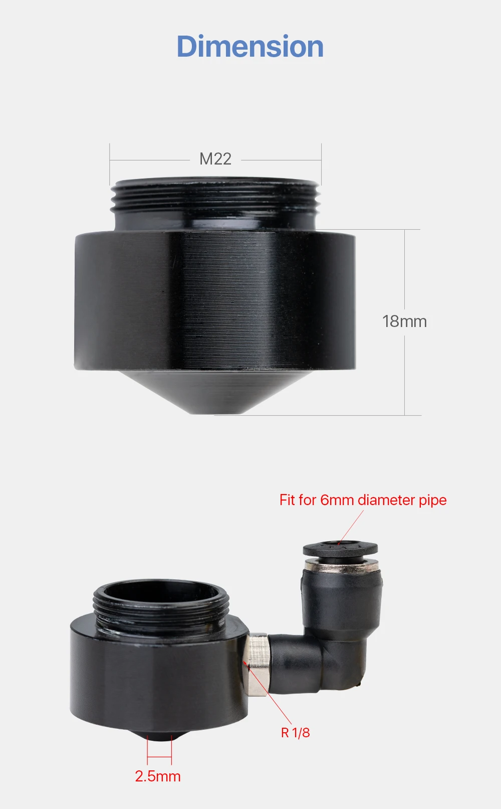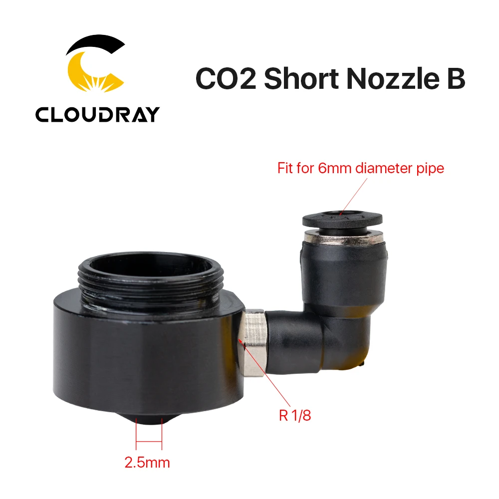 Воздушная Форсунка Cloudray N02 для Dia.20 FL38.1 линзы CO2, короткая насадка B с фитингом для лазерной головки на CO2, лазерная режущая машина