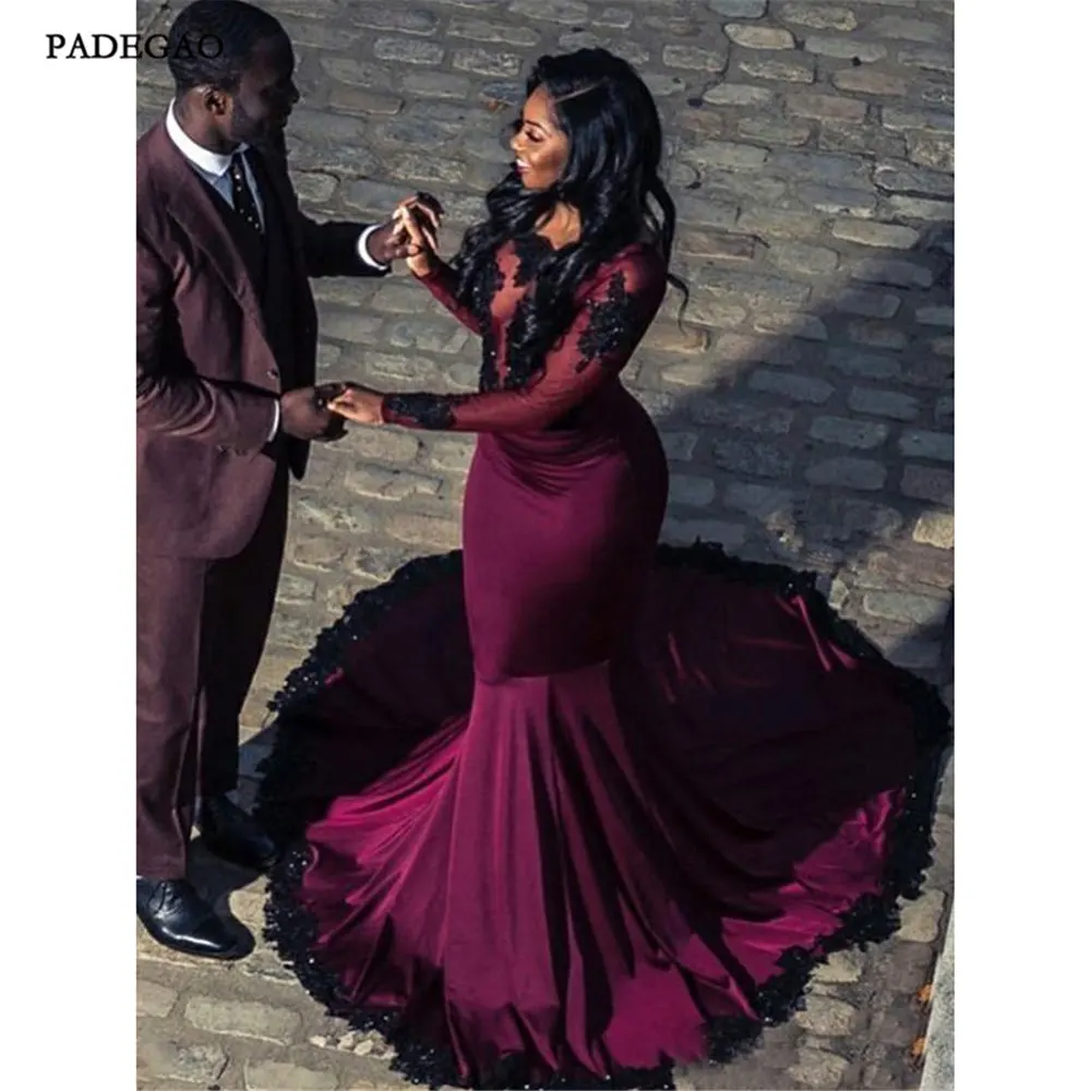 Винтажные женские платья вечерние платья с аппликациями Длинные рукава развертки поезд с открытой спиной, пикантный вечерние платья под заказ сделано