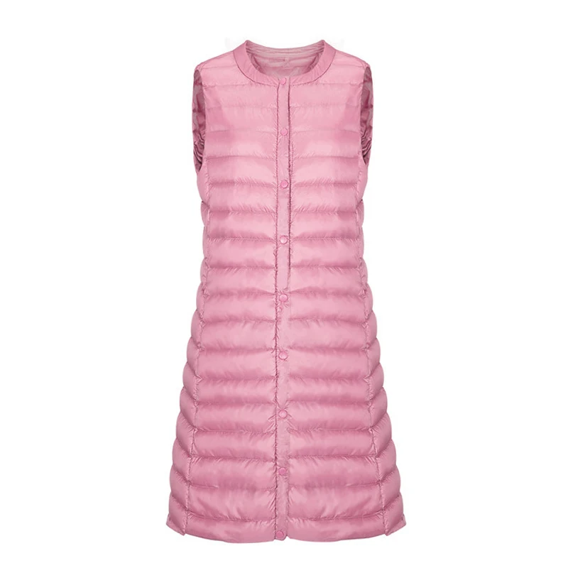 Женский осенне-зимний ультралегкий пуховой жилет, ветрозащитный длинный жилет без рукавов, модная теплая женская пуховая верхняя одежда, куртки, пальто