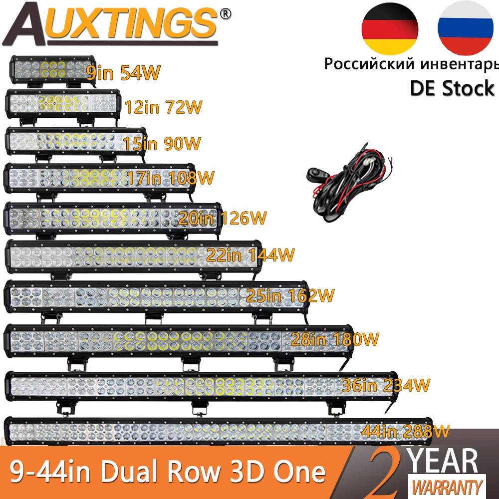 Светодиодная балка Auxtings, 12, 20, 22 дюйма, 1224 В, для внедорожников, грузовиков, кроссоверов, квадроциклов, точечный и заливающий рабочий свет, 126 Вт