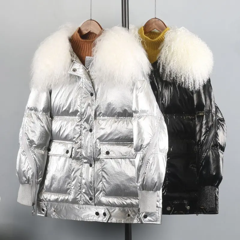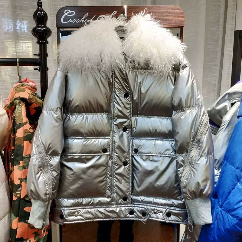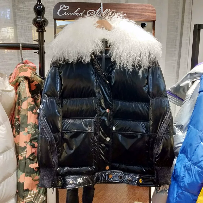 Женское длинное пуховое пальто, теплая парка на белом утином пуху с воротником из натуральной шерсти, 2019 пух, для зимы, 90%