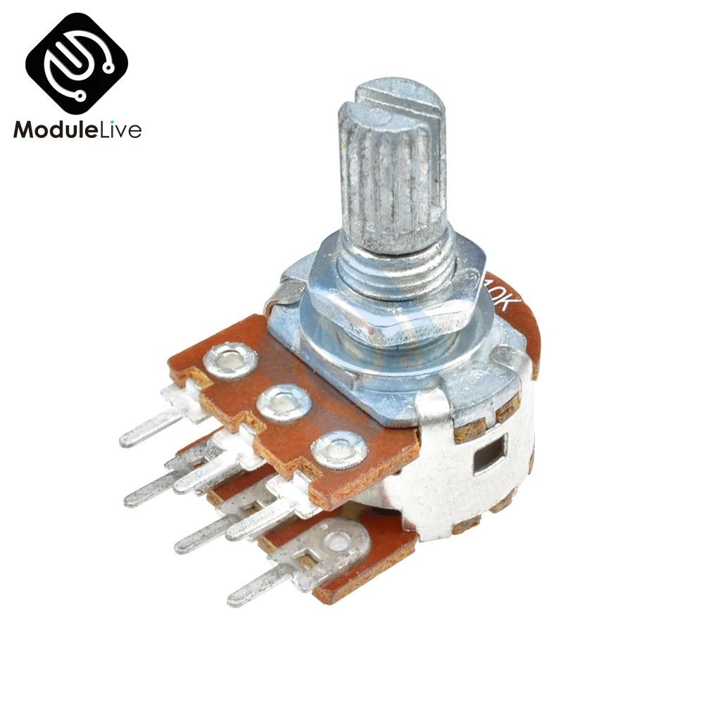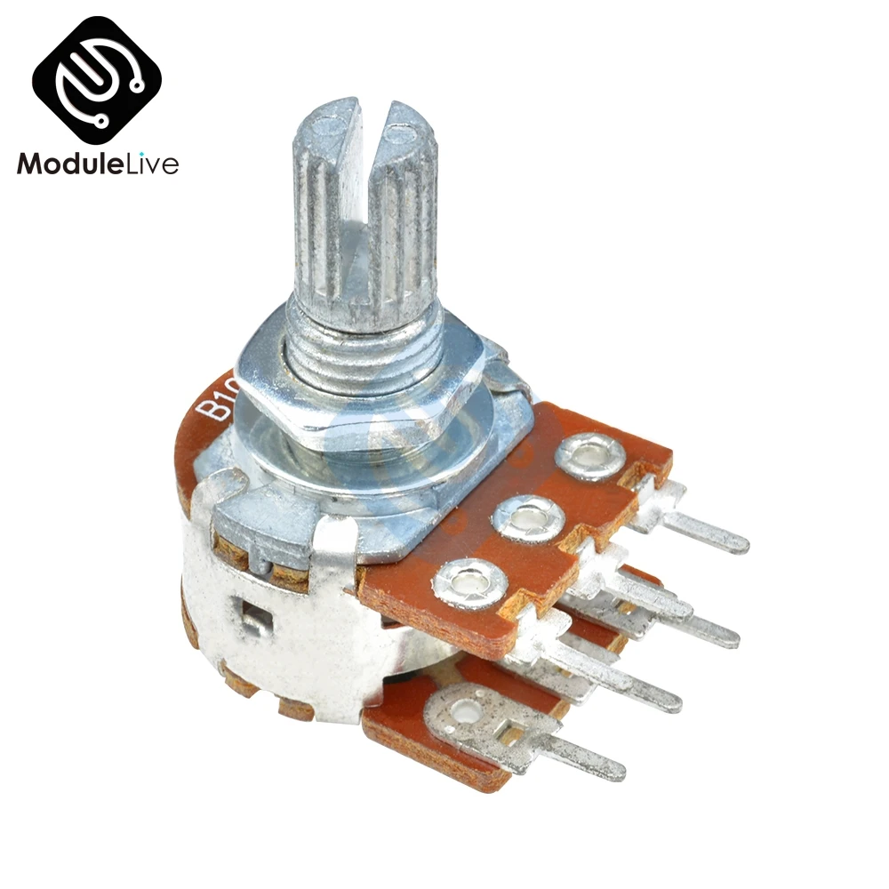 B1K B2K B10K B20K B50K B250K 20 мм 6-контактный резистор с двойным стерео-потенциометром, потенциометр с разрезом Welle для WH148