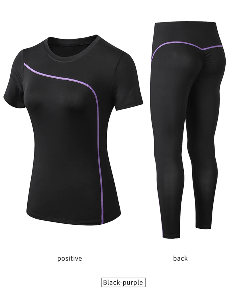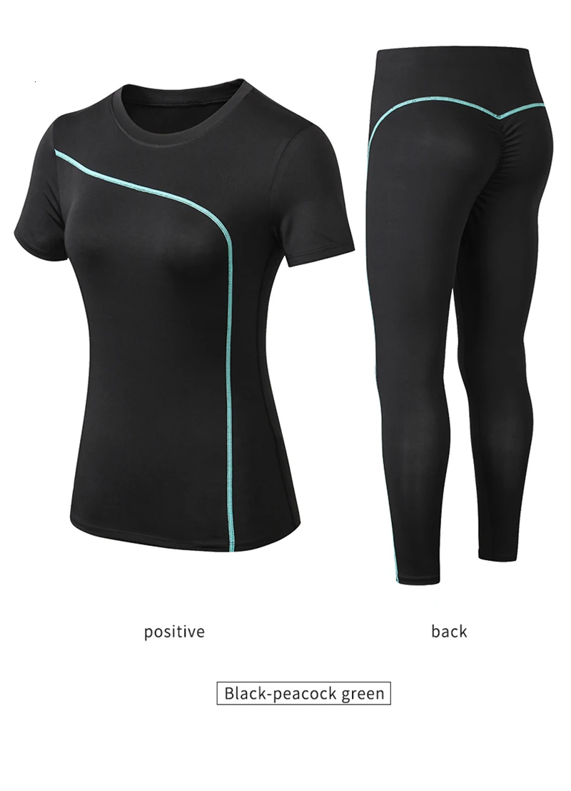 женские спортивный костюм комплект для йоги из 2 предметов, одежда для тренажерного зала, теннисная майка для йоги + бесшовные леггинсы, тренировочный спортивный костюм, одежда для активного отдыха